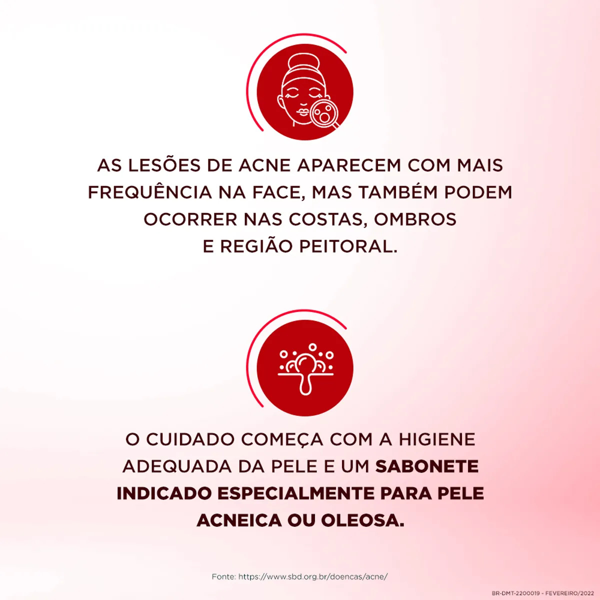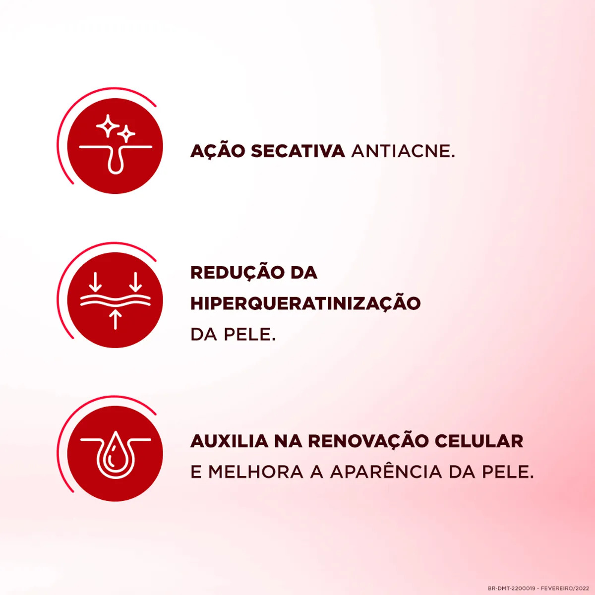 Para Que Serve:Sua formulação, com ácido salicílico, possui efeito secativo, reduzindo o excesso de oleosidade, desobstruindo os poros e auxiliando na diminuição de cravos e espinhas. Como resultado, proporciona uma pele mais uniforme. Produto não comedogênico. Dermatologicamente testado. Cuidado diário.Modo de Usar:Aplique sobre a pele umedecida do rosto e áreas afetadas em suaves movimentos circulares. Enxágue por completo. Use de uma a duas vezes ao dia ou conforme orientação do seu dermatologista.