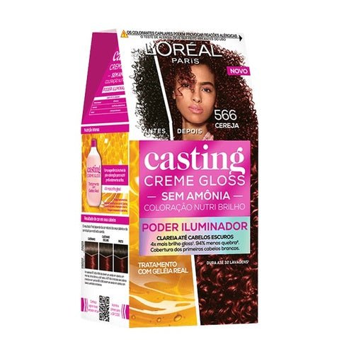 Desenvolvida para clarear e colorir cabelos escuros sem amônia, Casting Creme Gloss - Poder Iluminador garante uma transformação de cor visível, deixa o cabelo mais nutrido com o tratamento pós-coloração com Geleia Real, garante 4x mais Brilho Gloss¹, além de ser uma coloração que respeita os diferentes formatos de fios. • A única coloração que garante mais cor e4X mais brilho1com sua fórmula exclusiva presente no seucondicionador de tratamento Nutri-Brilho. • Reforça a fibra capilar, deixandoos cabelos mais maciose com toque aveludado. Modo de uso: Passo 1:Misture o creme colorante com o revelador e agite bem; Passo 2:Aplique a coloração por todo o cabelo, indo da raiz até as pontas. Use um pincel para espalhar bem o produto caso ache necessário; Passo 3:Deixe o produto agir por aproximadamente 30 minutos, de acordo com as instruções da embalagem; Passo 4:Enxágue o cabelo em água corrente para retirar todo o produto; Passo 5:Com os cabelos úmidos, aplique o condicionador de tratamento Nutri-Brilho, para deixar os fios macios e 4X mais brilhosos.