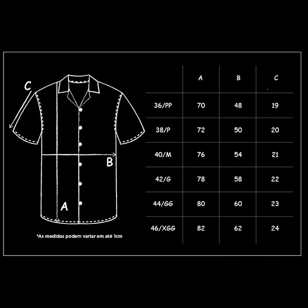 - Disponível do P ao GG, consulte a tabela de medidas na galeria de fotos.