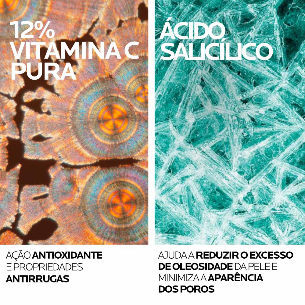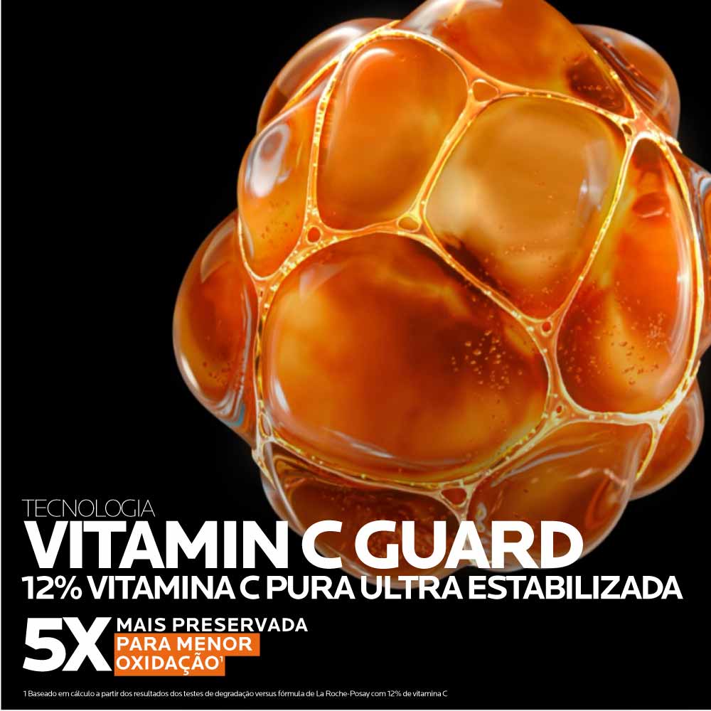Este sérum inovador combina o poder antioxidante da Vitamina C pura, em uma concentração significativa de 12%, com uma fórmula ultra estabilizada graças à tecnologia exclusiva Vitamin C Guard, que preserva cinco vezes mais a eficácia do ativo¹.