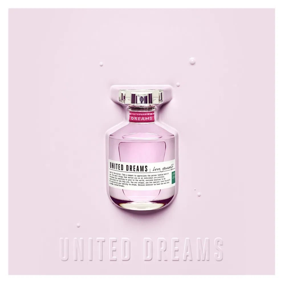 United Dreams Love Yourself Seus sonhos dizem muito sobre você. E através dos acordes do Perfume feminino United Dreams Love Youself inspirados pela família olfativa Floral, os sonhos de cada mulher tornam-se mais vivos. Uma dose de paixão, um toque de personalidade, a força dos sorrisos compartilhados, a energia dos olhares carregados de entusiasmo... Desvende esta maravilha da fórmula dos sonhos. Você é única. Você é especial. E merece ser valorizada por ser quem você é e por ter tanto a oferecer ao mundo. Em composição de Eau de Toilette o Benetton United Dreams Love Yourself é ideal para ser usado a qualquer momento do dia. Tem um tom rosa claro e um perfume suave e delicado. O perfume Benetton United Dreams Love Yourself foi pensado para para jovens mulheres que encaram a vida de uma forma nova e autoindulgente. Saboreie cada acorde de Benetton United Dreams Love Yourself, recarrege seu amor próprio e mostre ao mundo o quanto se valoriza. Uma fragrância feminina, sensual e moderna, que faz a mulher se sentir única e especial. Fragrância: Suas notas de topo são essências cítricas e frutadas formuladas a base de bergamota, damasco, pêra e framboesa. As notas de coração são o floral, rosa, jasmim e frésia. Já as notas de fundo são compostas por madeira, âmbar, musk, acorde (Sândalo) e acorde (âmbar)