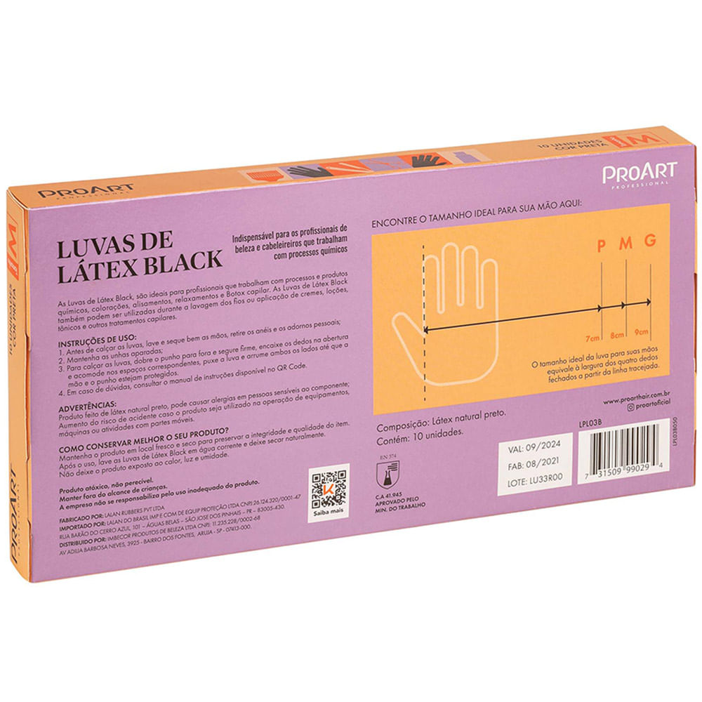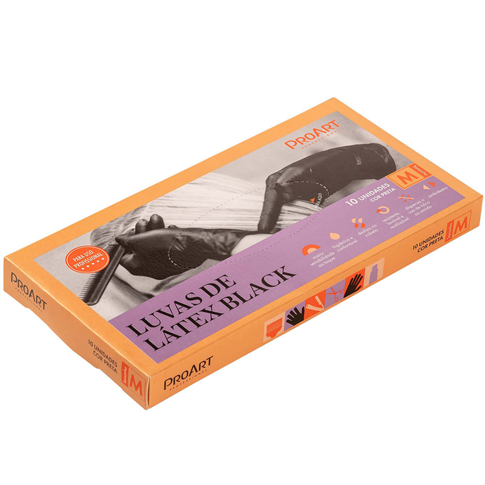 As Luvas de Látex Black, são ideais para profissionais que trabalham com processos e produtos químicos, colorações, alisamentos, relaxamentos e Botox capilar. As Luvas de Látex Black também podem ser utilizadas durante a lavagem dos fios ou aplicação de cremes, loções, tônicos e outros tratamentos capilares. Características: Aplicação de coloração e outros produtos químicos no cabelo. Altamente resistente e durável. Funções: Aplicação de Coloração e Outros Produtos no Cabelo Modo de usar: Antes de calçar as luvas, lave e seque bem as mãos, retire os anéis e os adornos pessoais; Mantenha as unhas aparadas; Para calçar as luvas, dobre o punho para fora e segure firme, encaixe os dedos na abertura e acomode nos espaços correspondentes, puxe a luva e arrume ambos os lados até que a mão e o punho estejam protegidos. Ideal para profissionais que trabalham com processos e produtos químicos, colorações, alisamentos, relaxamentos e botox capilar. Antifrizz Higiênica e confortável; Resistente, lavável e reutilizável; Dispensa o uso de talco ou amido; Ambidestra.