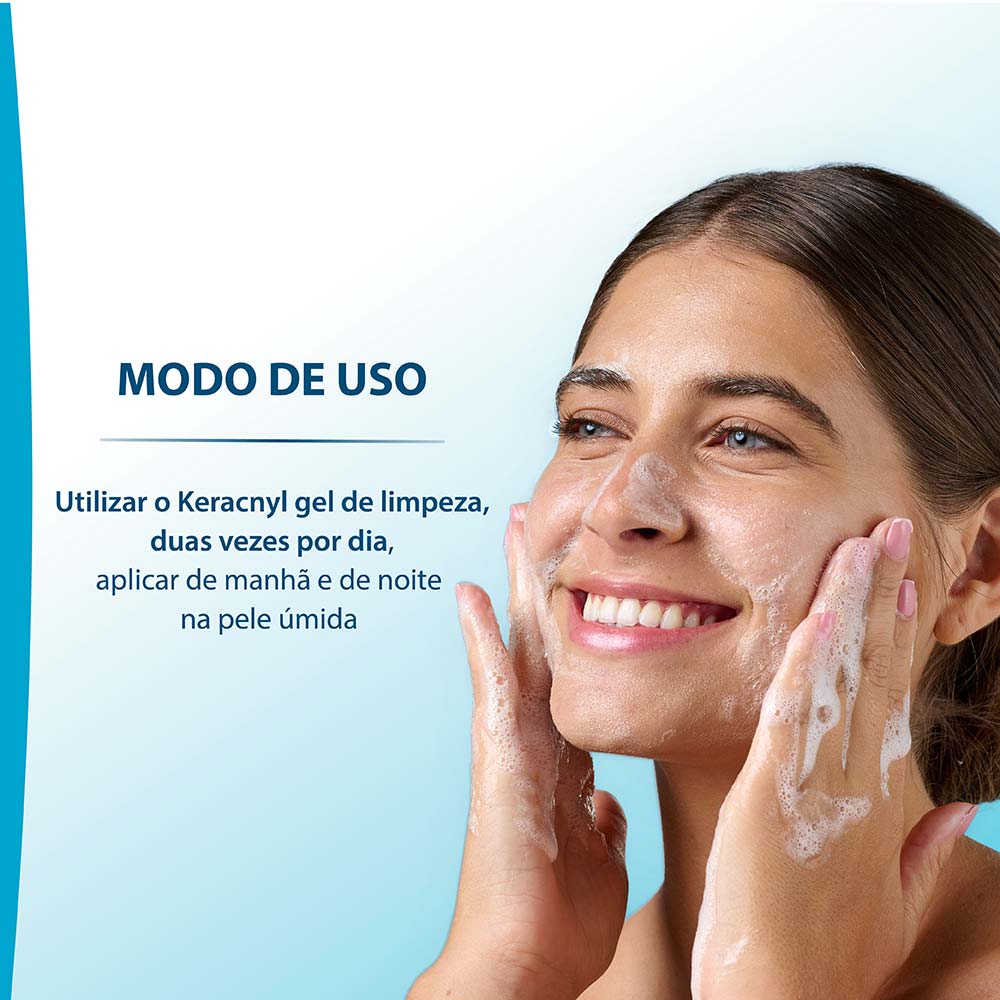 Gel de Limpeza Antiacne, para peles oleosas e acneicas, rosto e corpo. Promove o desaparecimento da acne enquanto preserva a barreira cutânea.