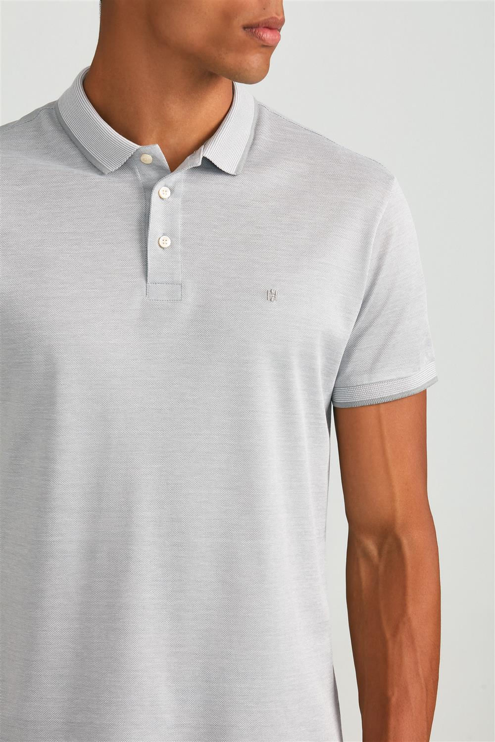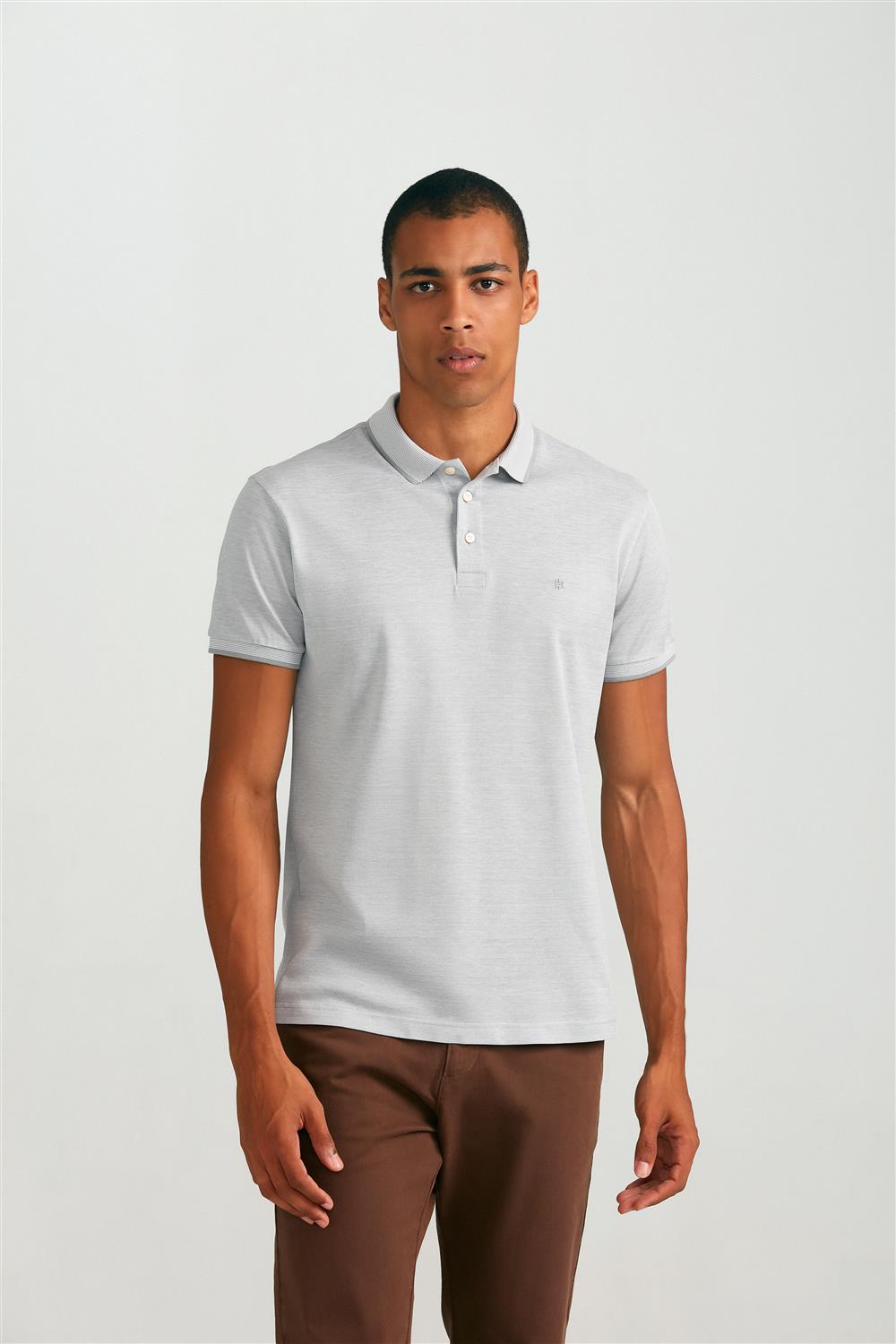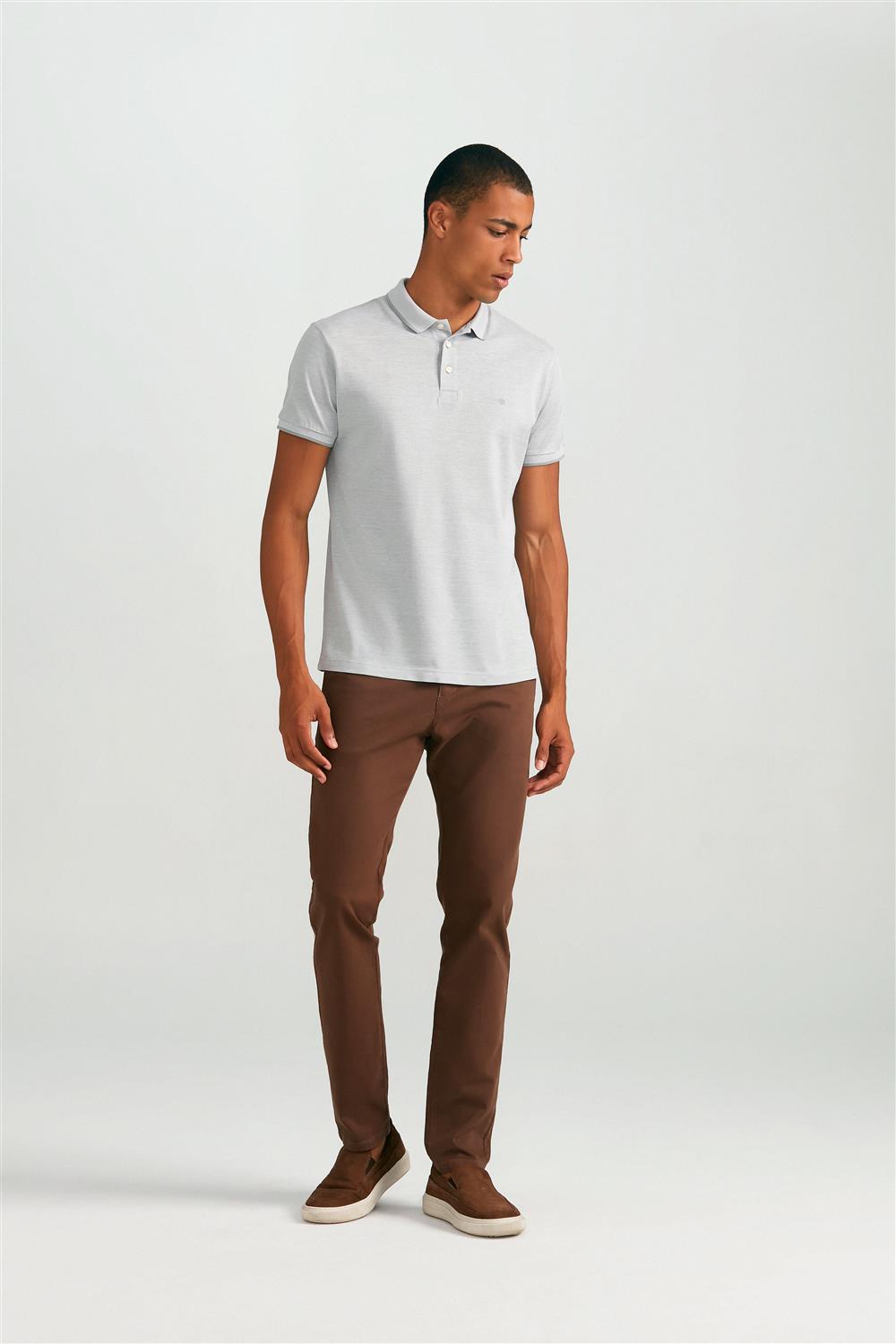 Polo Manga Curta Pima Slim Fit - Cinza / Branco