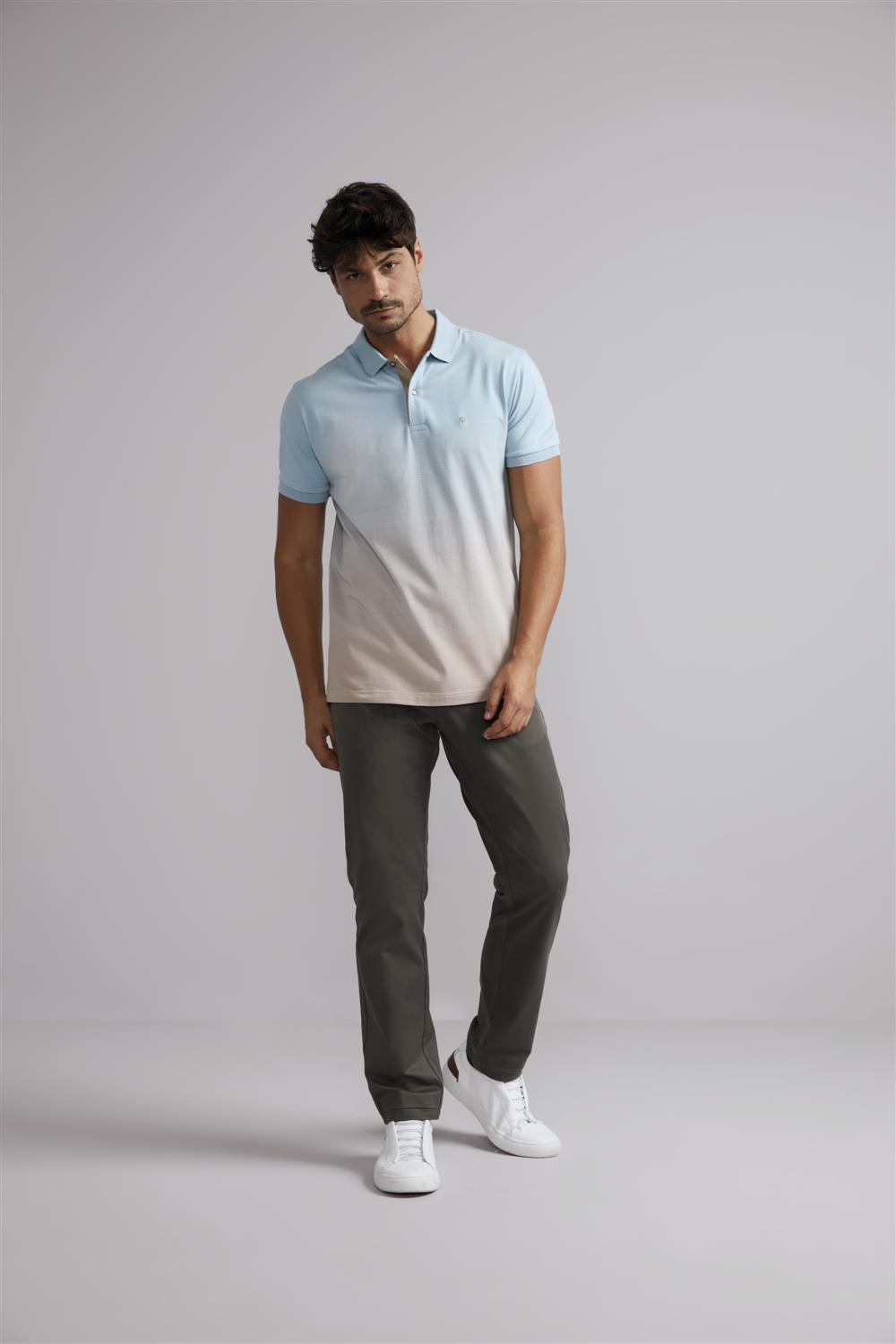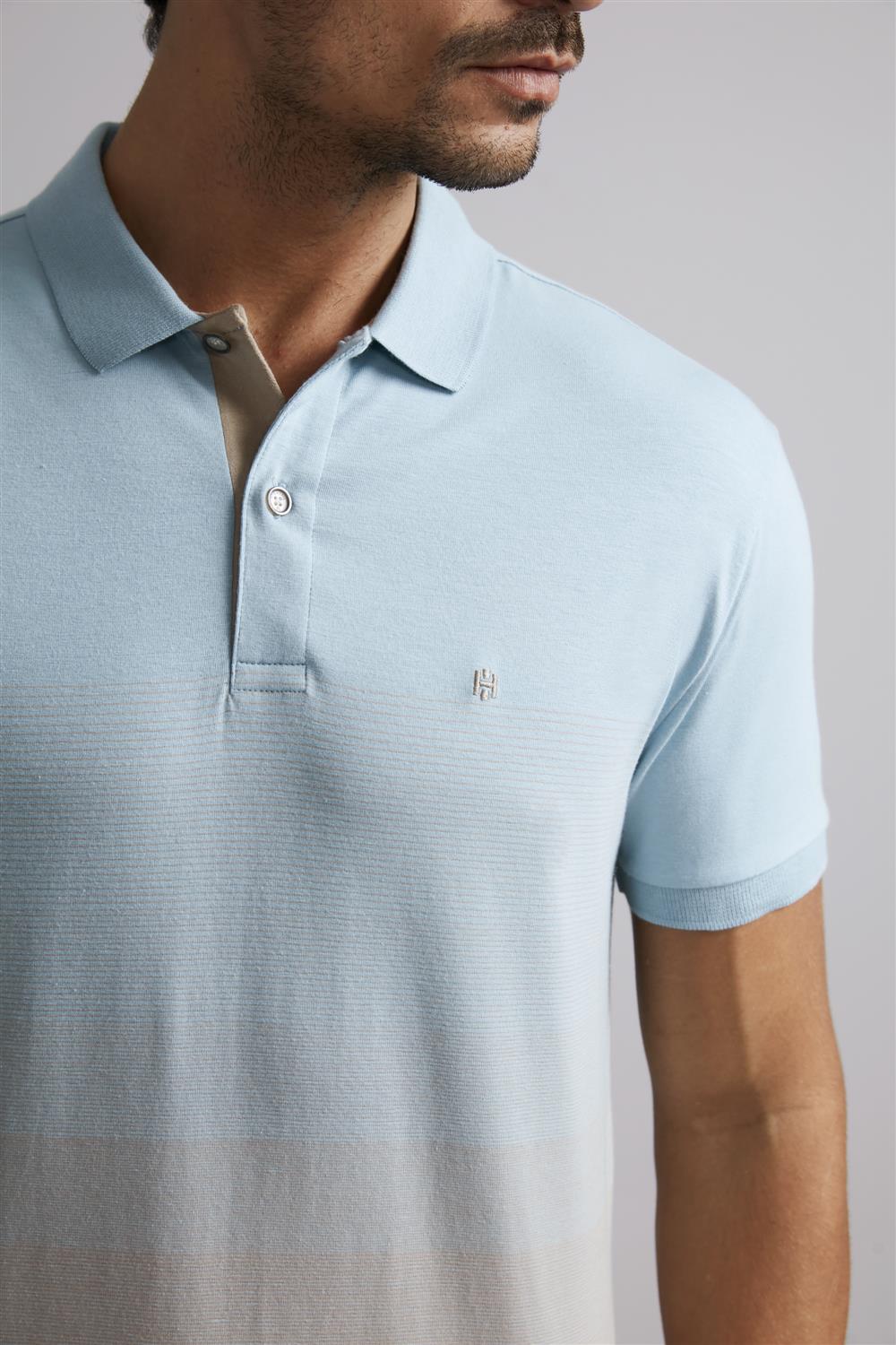 Camisa Polo Malha Slim Fit - Azul Céu / Marrom Craft