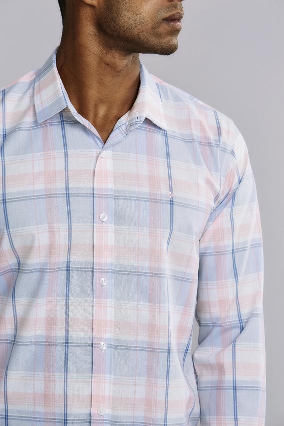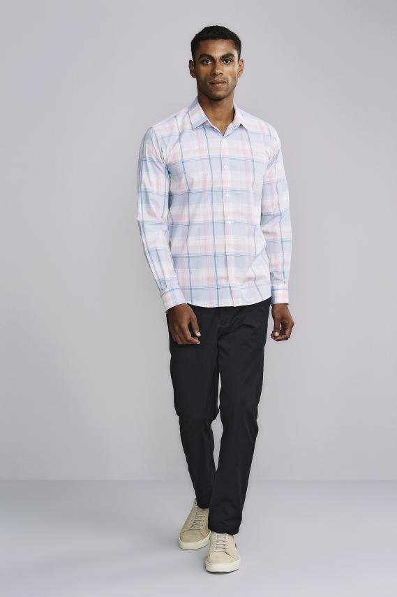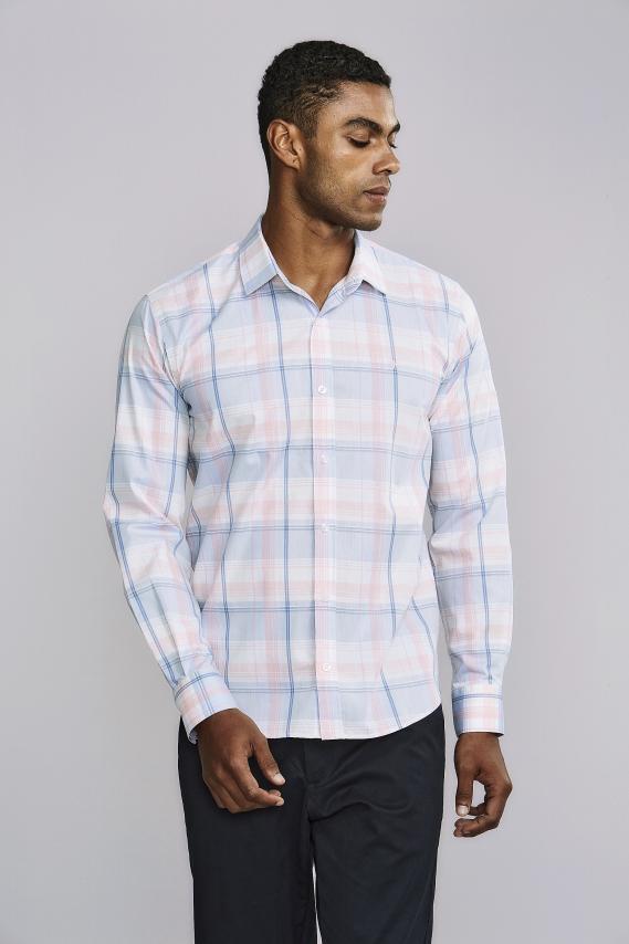 Camisa Manga Longa Xadrez Slim Fit - Rosa Claro