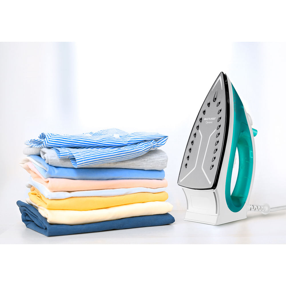Ele possui um jato de vapor que permite desamassar as roupas e um seletor de temperatura para ajustar de acordo com o tecido. Além disso, sua base de cerâmica alisa muito bem diversos tecidos.
