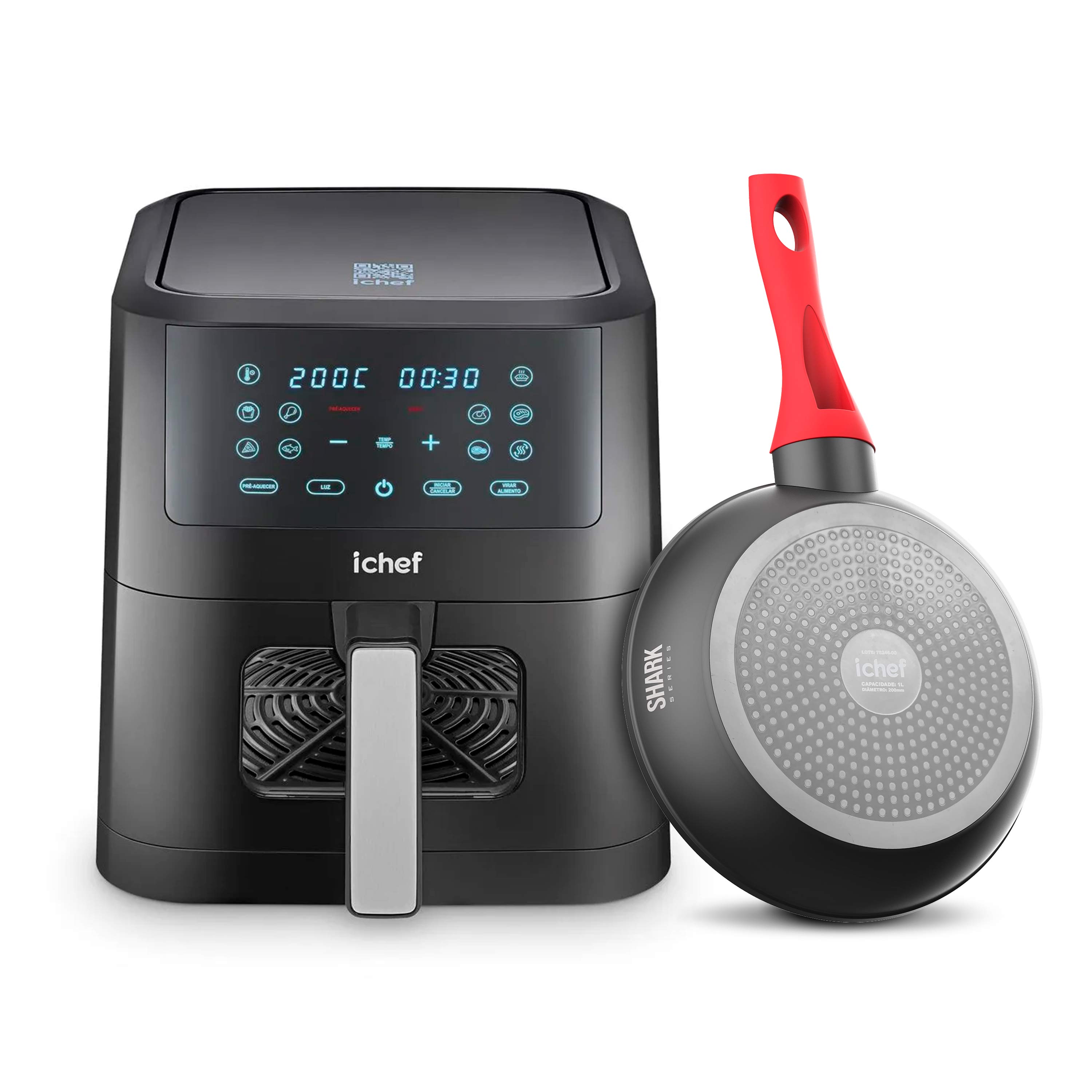 Airfryer Ichef Smart Vision 6L e Panelas Home Sauté Grand 24cm e Home Sauté Petit 20cm Vermelha