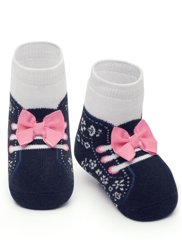 A meia com modelagem soquete atoalhada é produzida em algodão macio em sua maior parte de poliamida, possui desenho divertido de tênis. Possui aplique de laço texturizado, antiderrapante com solado de tênis incolor com aroma cheirinho de bebê. Instruções de Lavagem: LAVAGEM A MÃO; NÃO ALVEJAR Instruções de Conservação: NÃO SECAR EM TAMBOR; NÃO PASSAR; NÃO LIMPAR A SECO (MAIS INFORMAÇÕES, VIDE NA ETIQUETA) Instruções de Garantia: DEVERÁ SER ENCAMINHADO DENTRO DA EMBALAGEM ORIGINAL; SEM INDICAÇÕES DE USO; ACOMPANHADO DE NOTA FISCAL E COM TODOS OS ITENS CONSTANTE NA SOLICITAÇÃO DA COMPRA