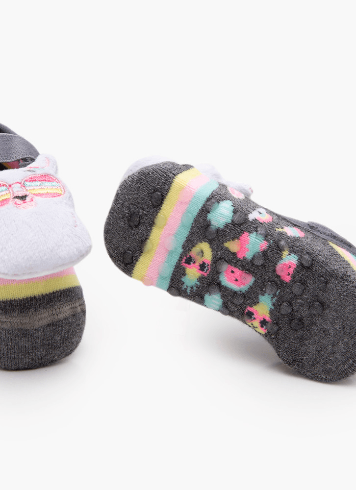 Meia Menina Sapatilha com Antiderrapante e Aplique Lhama