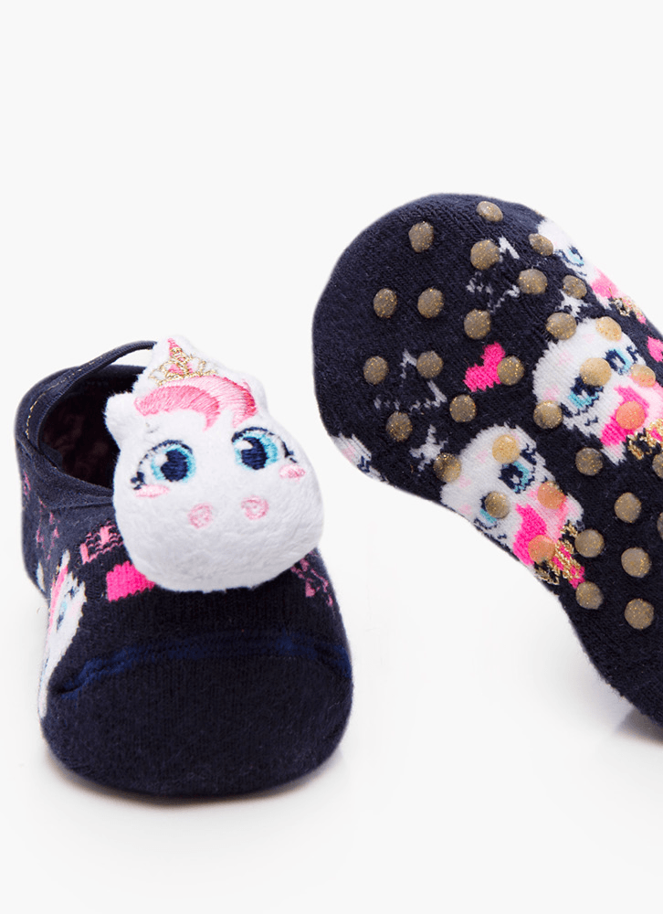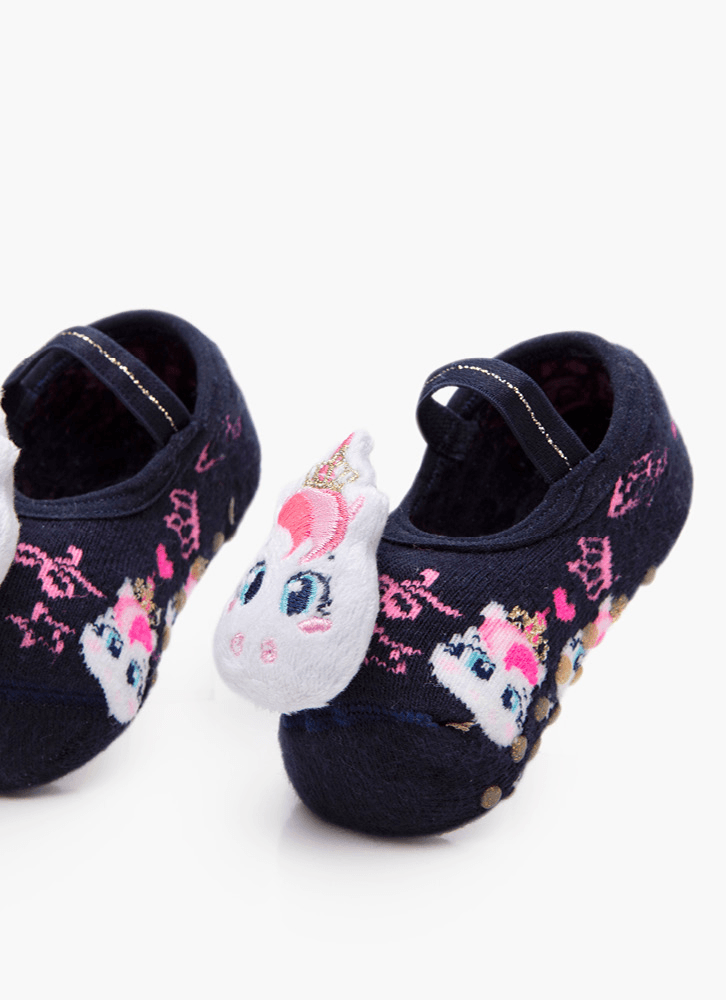 Meia Menina Sapatilha com Antiderrapante e Aplique Unicórnio