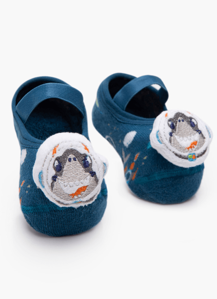 Meia Menino Sapatilha com Antiderrapante e Aplique Tubarão