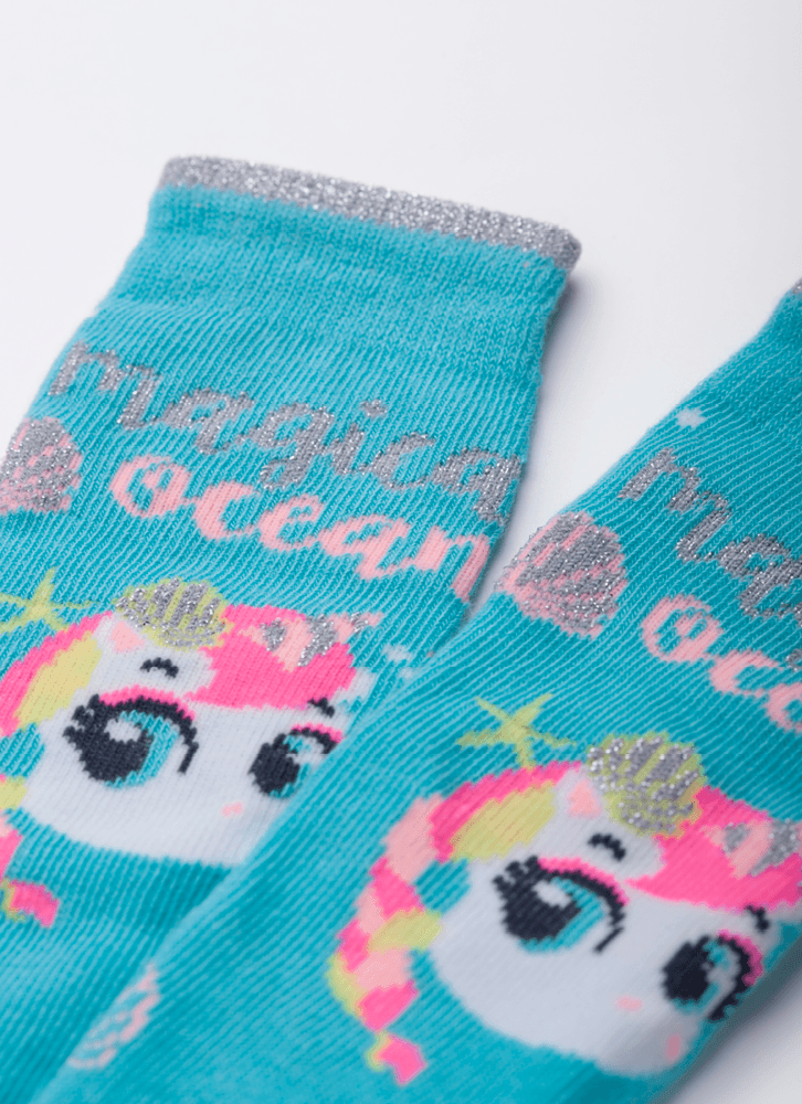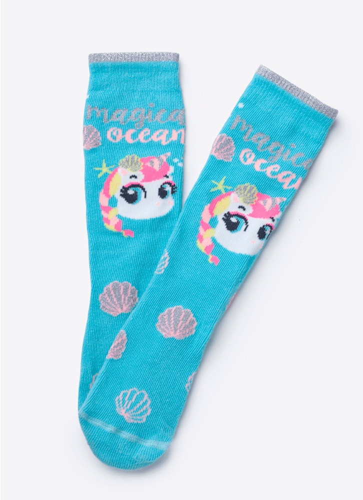 Meia Menina 3/4 Desenhada Cano Longo Unicórnio Mystic