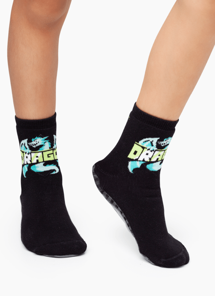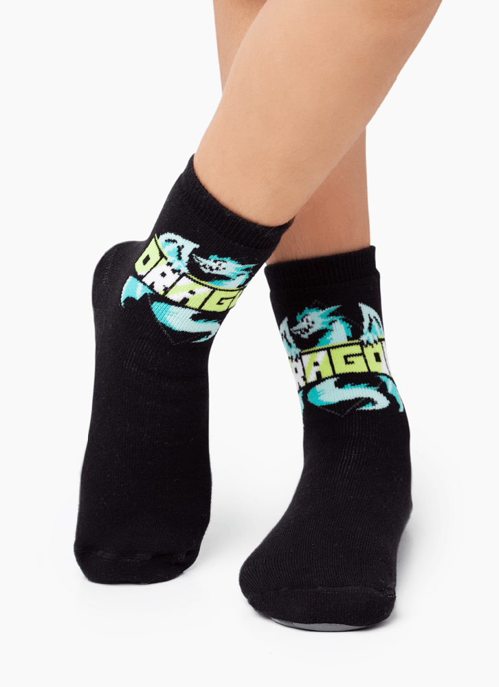 Meia Menino Soquete com sola Emborrachada Dragão