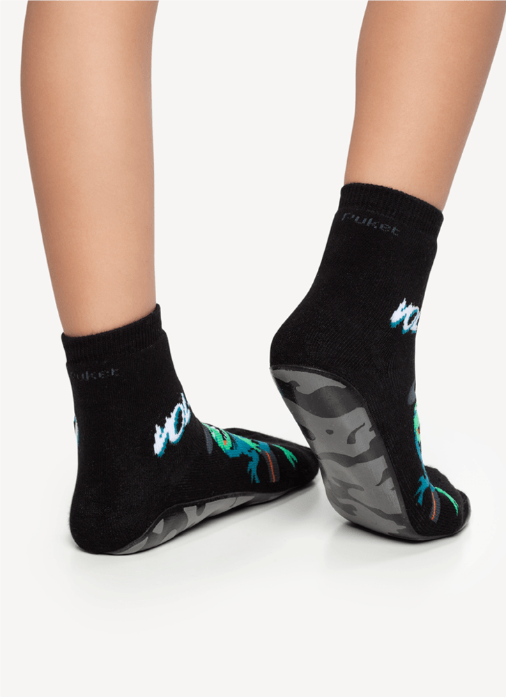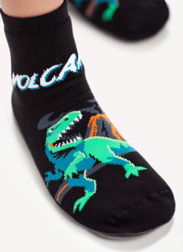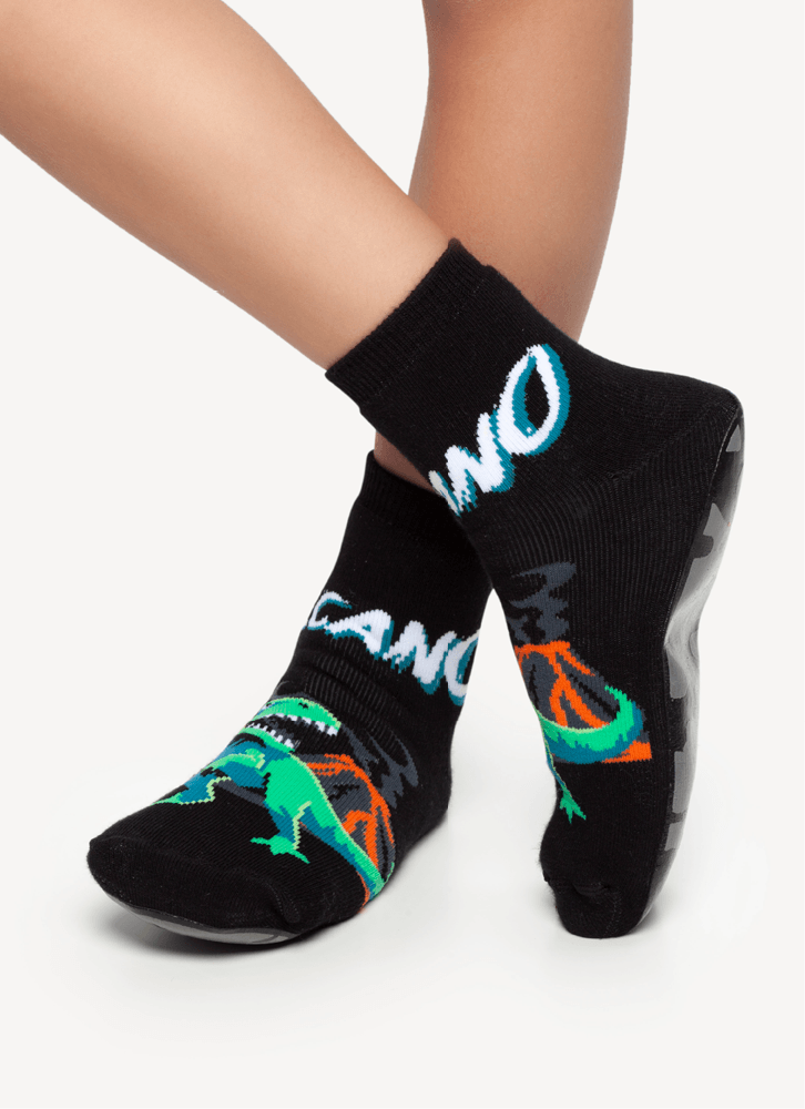Meia Menino Soquete com sola emborrachada Dino Vulcão