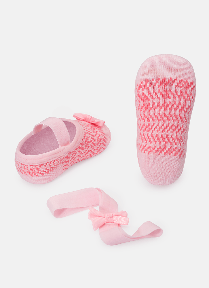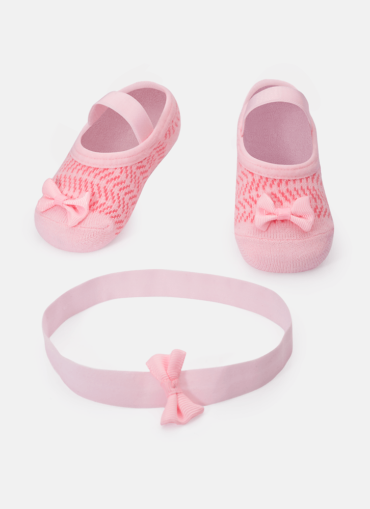 Kit Faixa de Cabelo e Meia Sapatilha Bebê Menina Rosa