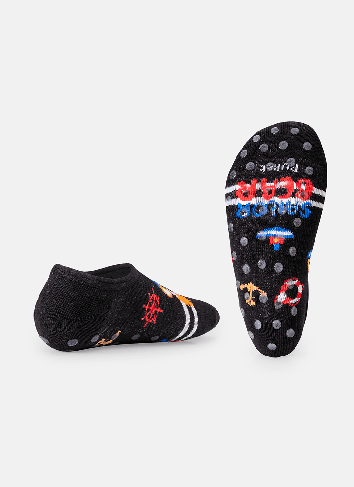 Meia com modelagem sapatinho com desenho divertido do urso marinheiro. Produzida com algodão macio em sua maior parte poliamida. Possui acabamento em viés.. Solado com antiderrapante com aroma de menta. Indicação de uso: Ideal para praticar exercícios e brincadeiras sem o uso de calçado e no dia a dia em casa. Lavagem a mão Não alvejar Instruções de Conservação: Não secar em tambor Não passar Não limpar a seco (MAIS INFORMAÇÕES, VIDE NA ETIQUETA) Instruções de Garantia: Deverá ser encaminhado dentro na embalagem original ACOMPANHADO DE NOTA FISCAL E com todos os itens constante na solicitação da compra.
