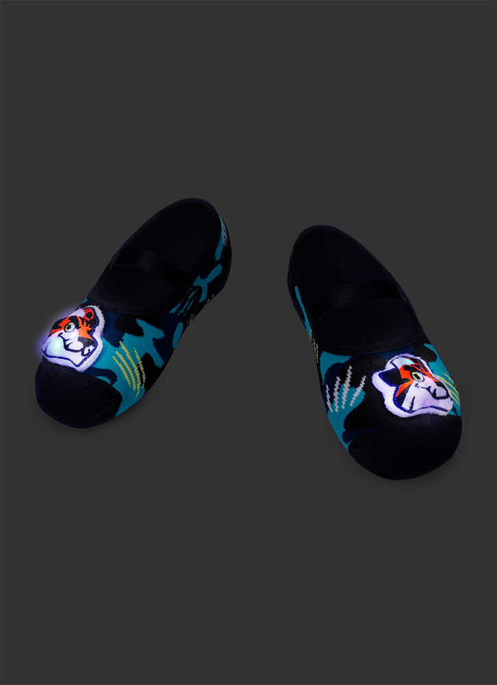 Meia Sapatilha Menino Antiderrapante com LED Tigre Roar