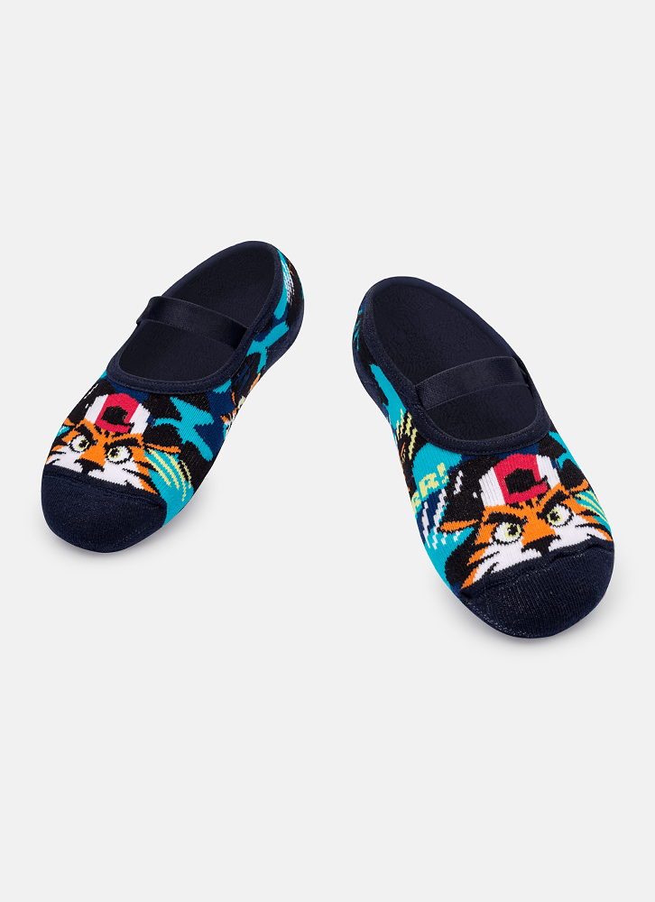 Meia com modelagem de sapatilha e desenho divertido do Tigre. Produzida com algodão macio em sua maior parte poliamida Possui acabamento em viés e elástico confortável. Solado com antiderrapante com aroma de menta. Indicação de uso: Ideal para praticar exercícios e brincadeiras sem o calçado e uso no dia a dia. Instruções de Lavagem: Lavagem a mão Não alvejar Instruções de Conservação: Não secar em tambor Não passar Não limpar a seco (MAIS INFORMAÇÕES, VIDE NA ETIQUETA) Instruções de Garantia: Deverá ser encaminhado dentro na embalagem original ACOMPANHADO DE NOTA FISCAL E com todos os itens constante na solicitação da compra.