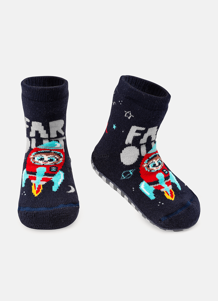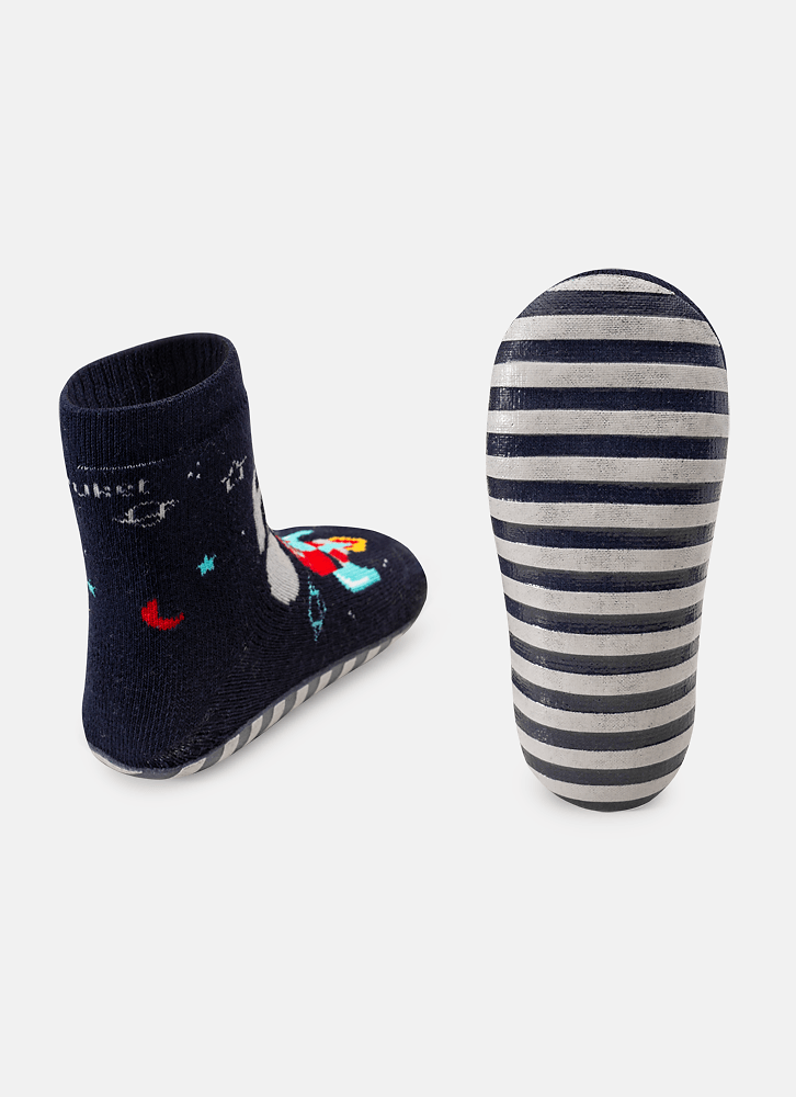 Meia Soquete Bebê Menino Sola Emborrachada Foguete