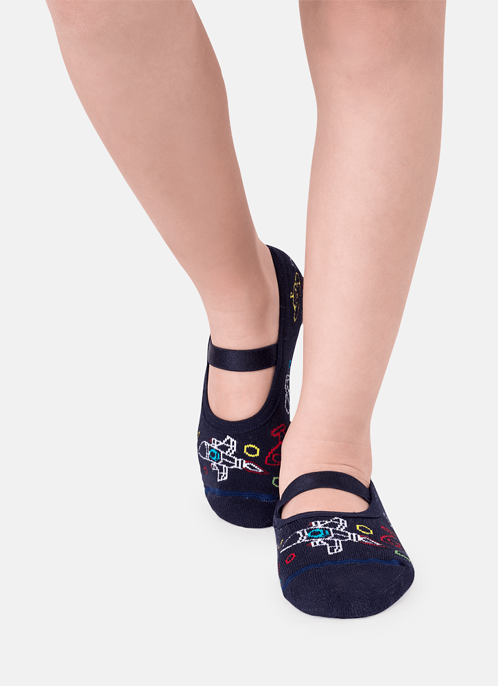 Meia com modelagem de sapatilha e desenho do planeta. Produzida com algodão macio em sua maior parte poliamida. Possui acabamento em viés e elástico confortável. Solado com antiderrapante com aroma de menta. Indicação de uso: Ideal para praticar exercícios e brincadeiras sem o calçado e uso no dia a dia em casa. Instruções de Lavagem: Lavagem a mão Não alvejar Instruções de Conservação: Não secar em tambor Não passar Não limpar a seco (MAIS INFORMAÇÕES, VIDE NA ETIQUETA) Instruções de Garantia: Deverá ser encaminhado dentro na embalagem original ACOMPANHADO DE NOTA FISCAL E com todos os itens constante na solicitação da compra.