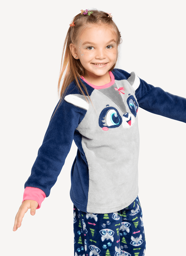 Pijama Manga Longa Menina Soft Família Guaxinim
