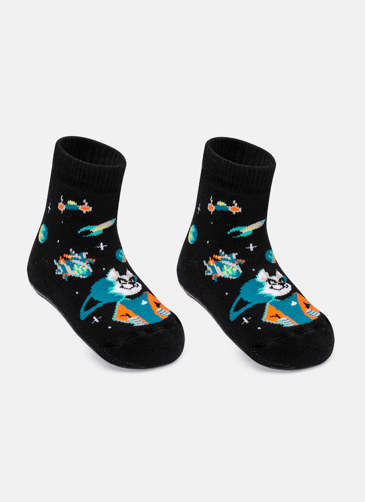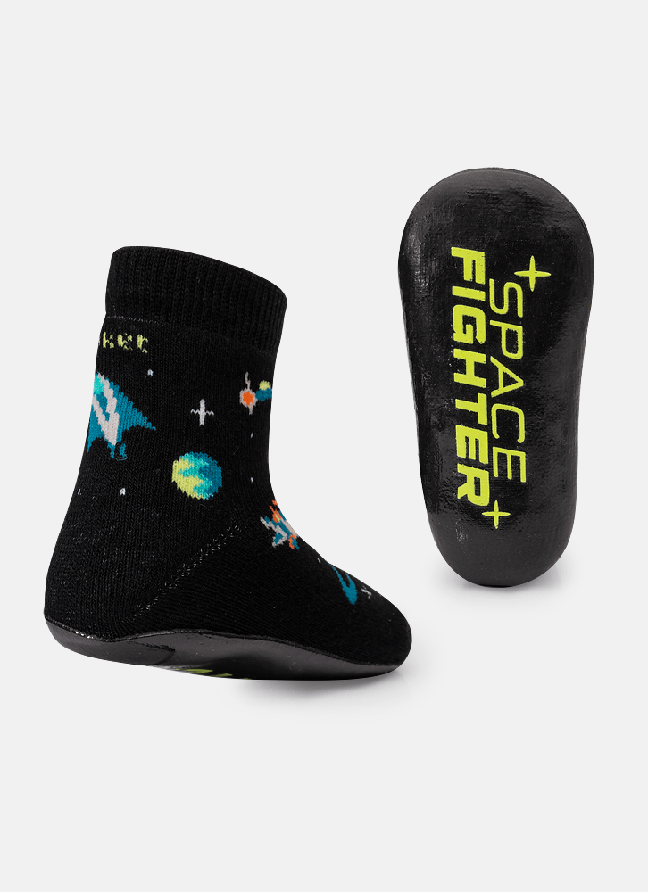 Meia Soquete com Sola Emborrachada Bebê Menino Lobo Space