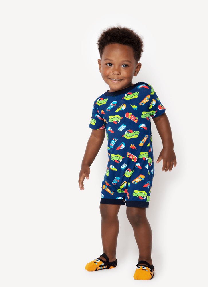 Macacão Manga Curta Bebê Viscolycra Dinossauro Skate