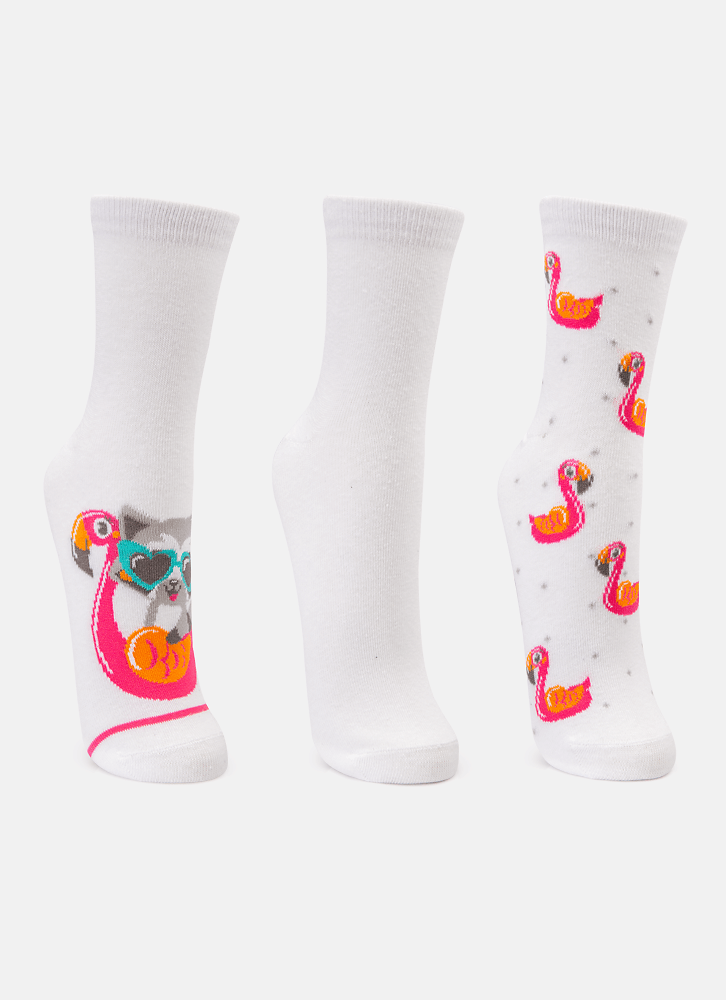 Kit com três pares de meias em algodão macio, sendo duas com desenhos divertidos do Guaxinim e uma em cor lisa. Produzida com algodão macio em sua maior parte do desenho é poliamida. Cano de altura média Calcanhar verdadeiro Punho super confortável Indicação de uso: Ideal para ser usada com tênis e sapatos, deixando seu look ainda mais lindo e moderno. Instruções de Lavagem: Lavagem a mão Não alvejar Instruções de Conservação: Não secar em tambor Não passar Não limpar a seco (MAIS INFORMAÇÕES, VIDE NA ETIQUETA) Instruções de Garantia: Deverá ser encaminhado dentro na embalagem original ACOMPANHADO DE NOTA FISCAL E com todos os itens constante na solicitação da compra."