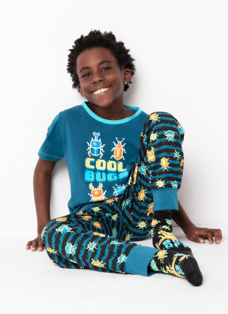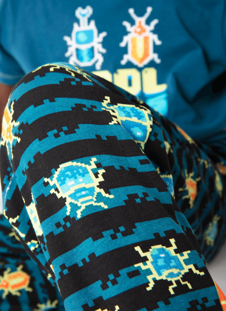 Pijama Longo Manga Curta Menino Teen Viscolycra Pixel Bugs Brilha no Escuro