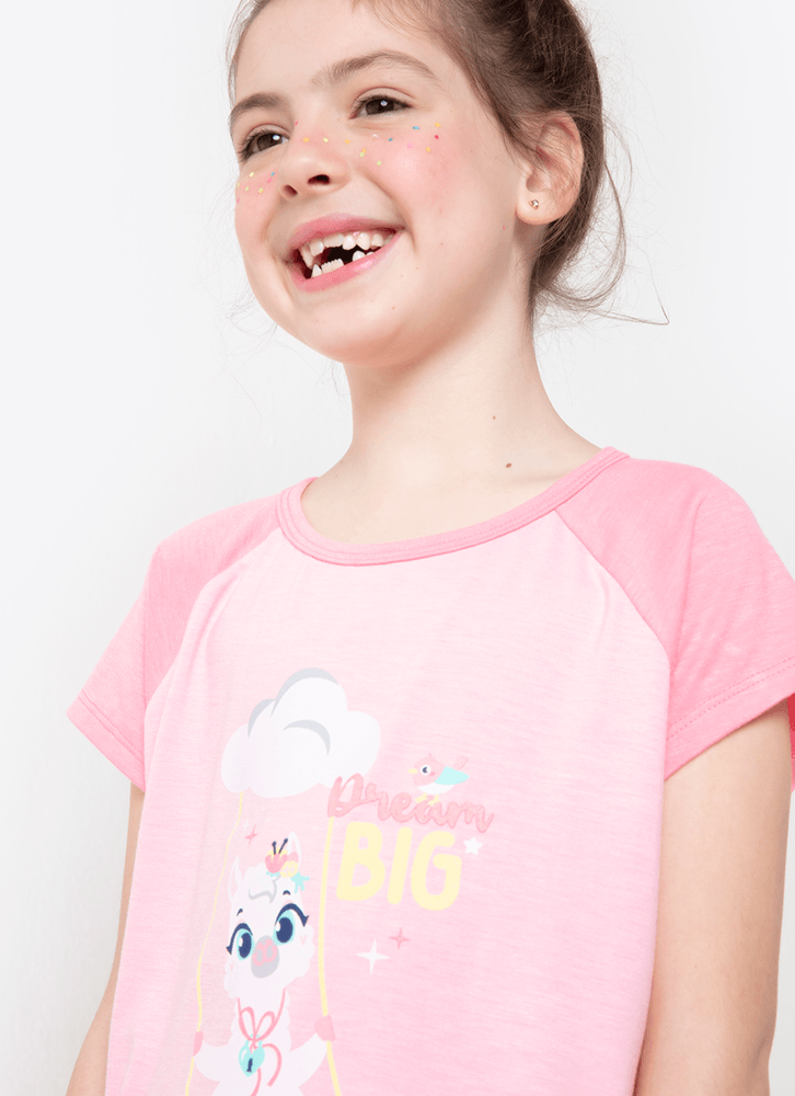 Pijama Manga Curta Menina Viscolycra Lhama Secret