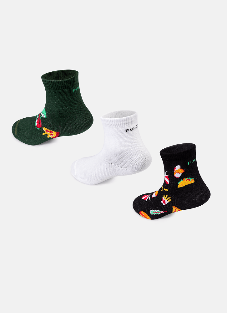 Kit com 3 Meias Soquete Bebê Menino Dino Food