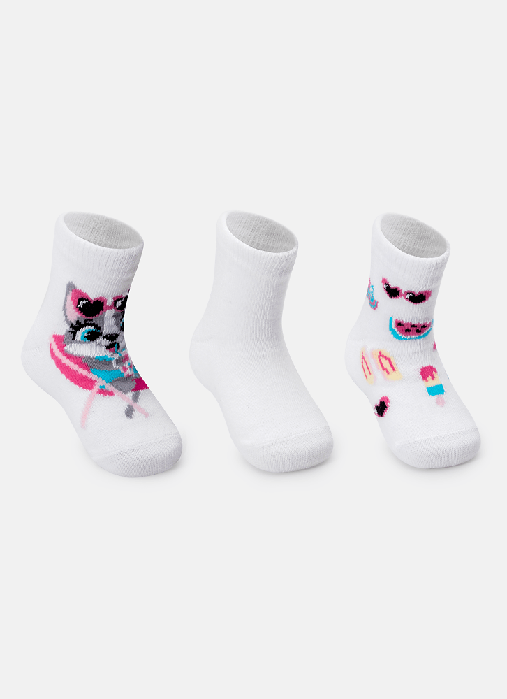 Kit com 3 Meias Soquete Bebê Menina Cachorro