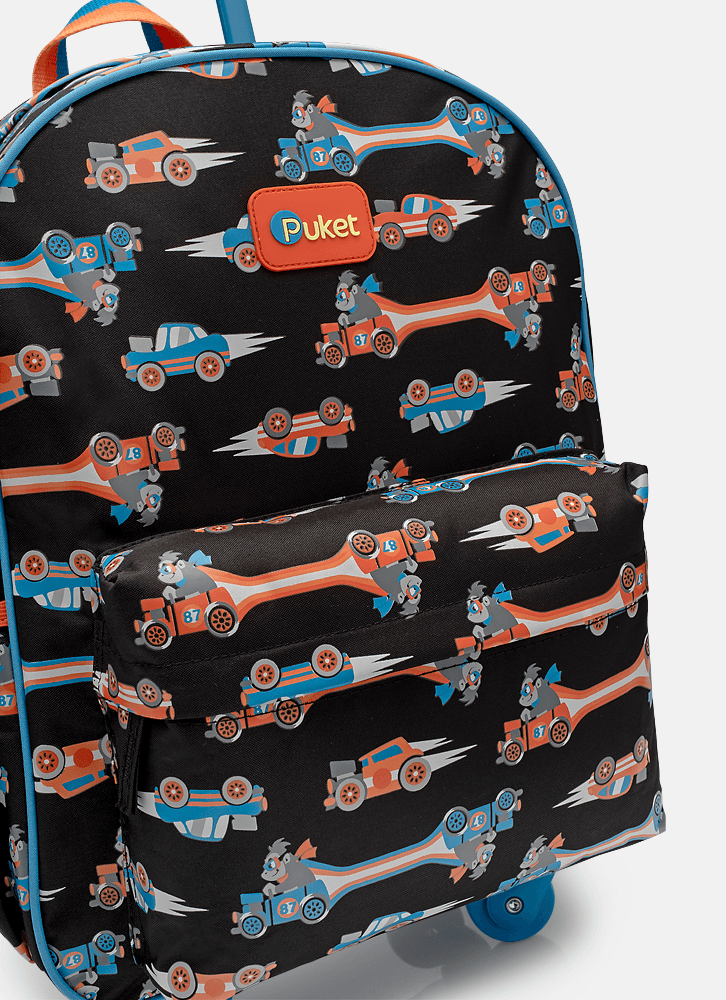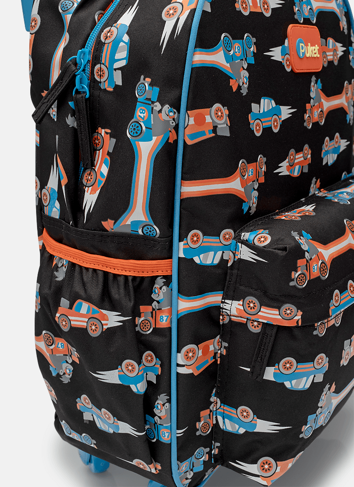 Kit mochila com rodinha e lancheira Gorila. Mochila em nylon com 4 rodinhas 360°, possui haste com 2 regulagens de altura, bolso frontal e bolso lateral para garrafinha. Lancheira térmica com 1 compartimento, alça de mão e alças com regulagem de altura.