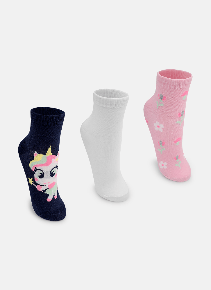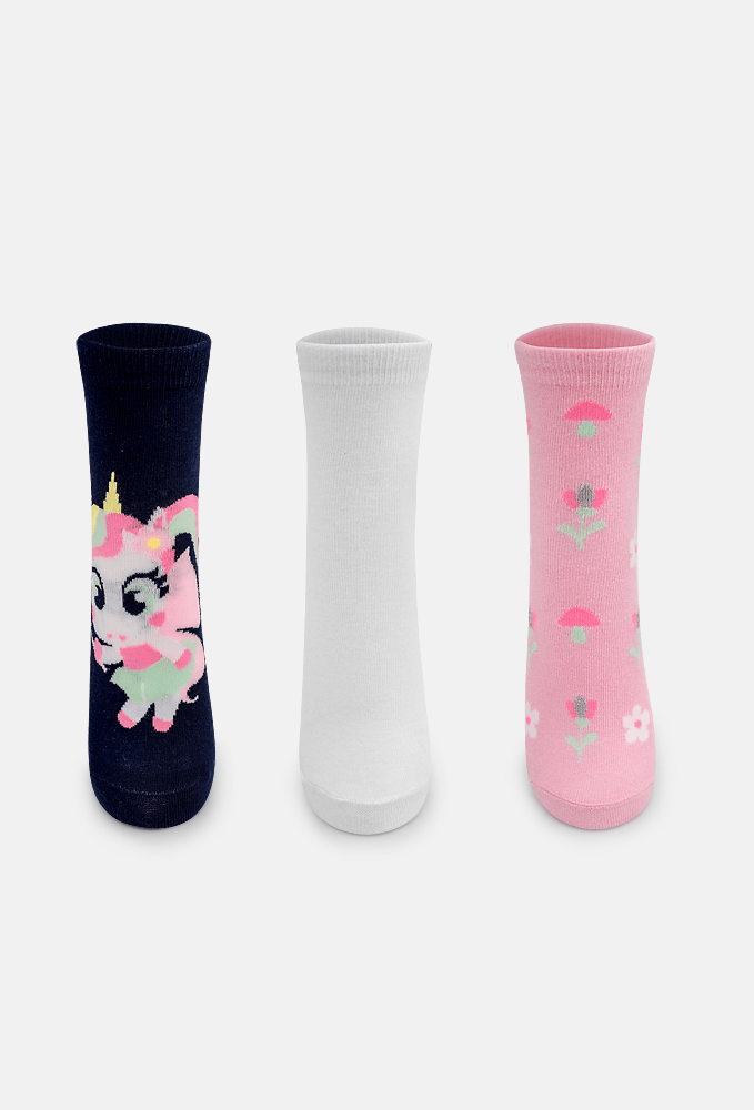 'Kit com três pares de meias em algodão macio e poliamida no desenho, sendo duas com desenhos divertidos do tema Uni Floresta Encantada e uma em cor lisa. Possuem cano confortável de altura curta. Indicação de uso: Ideal para usar com calçados fechados. Instruções de Lavagem: Lavagem a mão Não alvejar Instruções de Conservação: Não secar em tambor Não passar Não limpar a seco (MAIS INFORMAÇÕES, VIDE NA ETIQUETA) Instruções de Garantia: Deverá ser encaminhado dentro na embalagem original, sem indicações de uso ACOMPANHADO DE NOTA FISCAL E com todos os itens constante na solicitação da compra.'