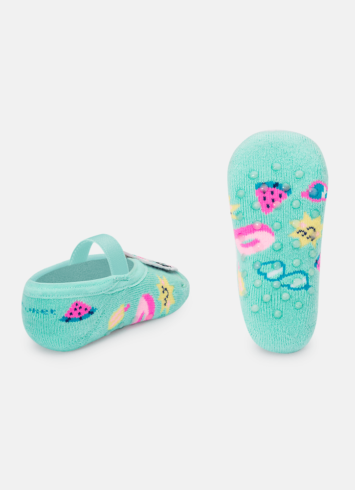 ? Meia sapatilha com desenho divertido e aplique de unicórnio em vinil costurado na frente da meia. ? Produzida com algodão macio em sua maior parte. ? Possui acabamento em viés e elástico confortável. ? Solado com antiderrapante com aroma de morango. Indicação de uso: ? Ideal para praticar exercícios e brincadeiras sem o calçado e uso no dia a dia. Instruções de Lavagem: ? Lavagem a mão ? Não alvejar Instruções de Conservação: ? Não secar em tambor ? Não passar ? Não limpar a seco (MAIS INFORMAÇÕES, VIDE NA ETIQUETA) Instruções de Garantia: Deverá ser encaminhado dentro na embalagem original acompanhado de nota fiscal e com todos os itens constante na solicitação da compra.