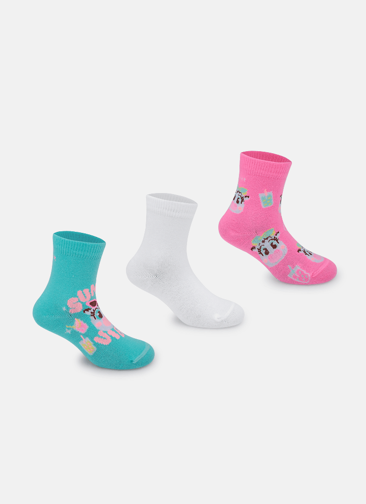 Kit com 3 Meias Soquete Bebê Menina Vaca Summer