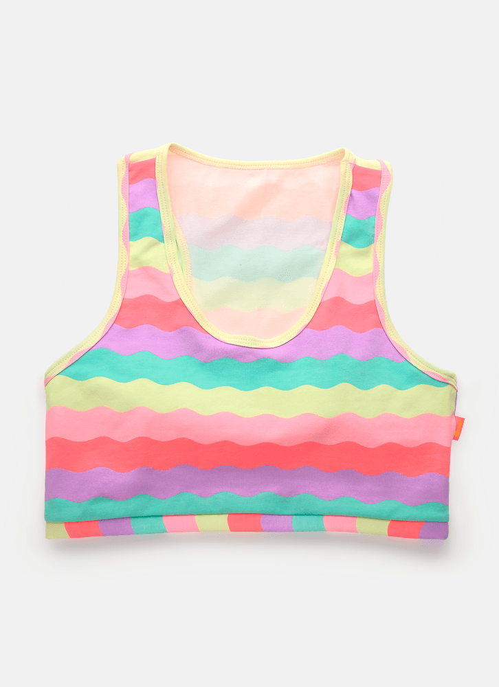• Top Teen Cotton Listrado Arco-íris • Tecido duplo no busto • Elástico embutido na barra • Tecido: Cotton • Estampa de listras • Tecido Externo: 95% Algodão 05% Elastano • Como lavar e conservar bem meu produto: Lavagem a mão, Não alvejar, Não secar em tambor, Secagem em varal por gotejamento a sombra Não passar ou utilizar vaporização, Não limpar a seco, Não limpar a úmido • Garantia por defeito: Deverá ser encaminhado dentro da embalagem original; Sem indícios de uso; acompanhado de nota fiscal e com todos os itens constantes na solicitação de troca.