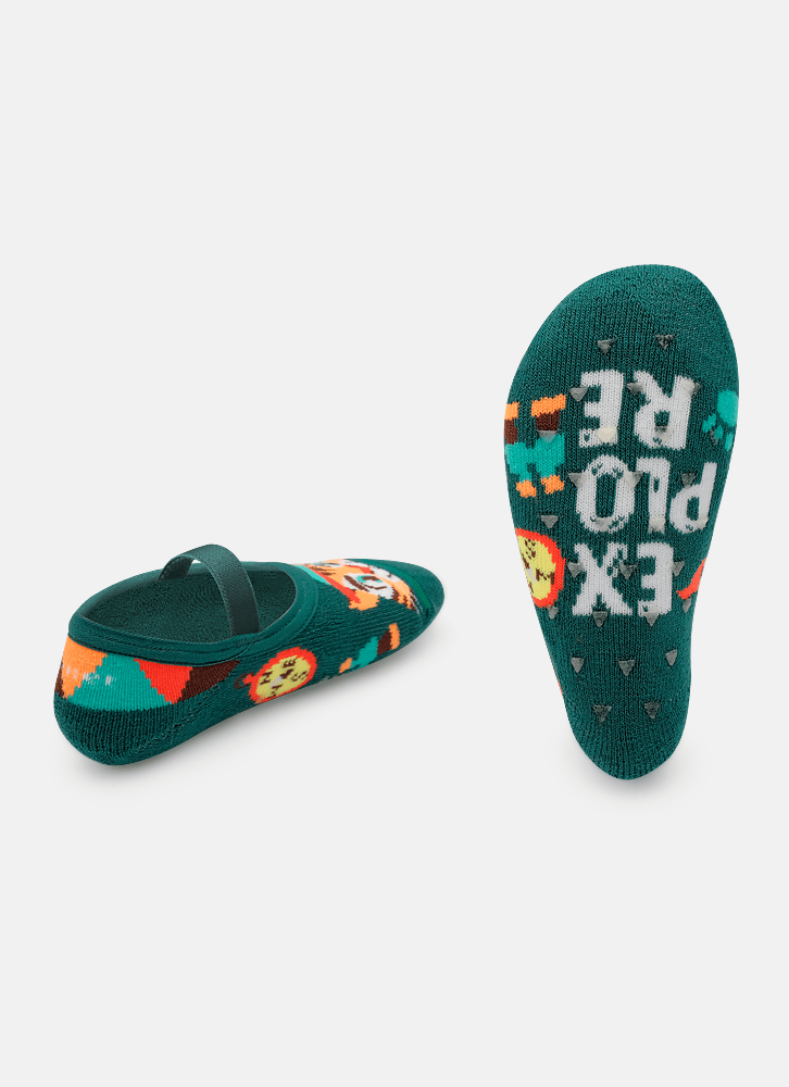 Meia Sapatilha Antiderrapante Bebê Menino Tigre Camping