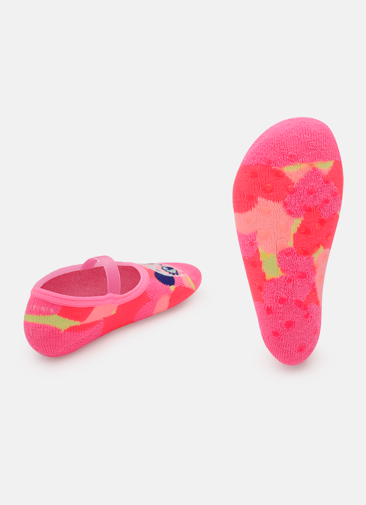 Meia com modelagem de sapatilha no tema de panda. Produzida com fio de acrílico macio e poliamida no desenho. Possui acabamento em viés e elástico confortável. Solado com antiderrapante, aroma de talco. Indicação de uso: Ideal para compor com a roupa sem o uso do calçado e usar no dia a dia. Instruções de Lavagem: Lavagem a mão Não alvejar Instruções de Conservação: Não secar em tambor Não passar Não limpar a seco (MAIS INFORMAÇÕES, VIDE NA ETIQUETA) Instruções de Garantia: Deverá ser encaminhado dentro na embalagem original, sem indicações de uso ACOMPANHADO DE NOTA FISCAL E com todos os itens constante na solicitação da compra.