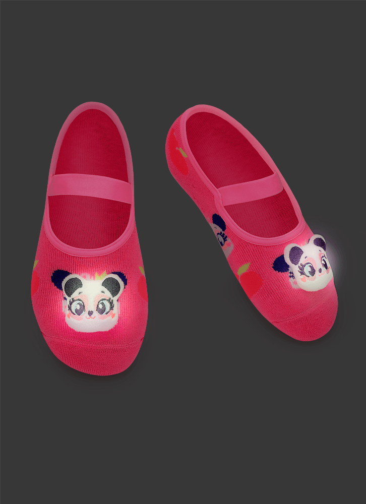 Meia Sapatilha Antiderrapante Feminina Panda Romântico com LED