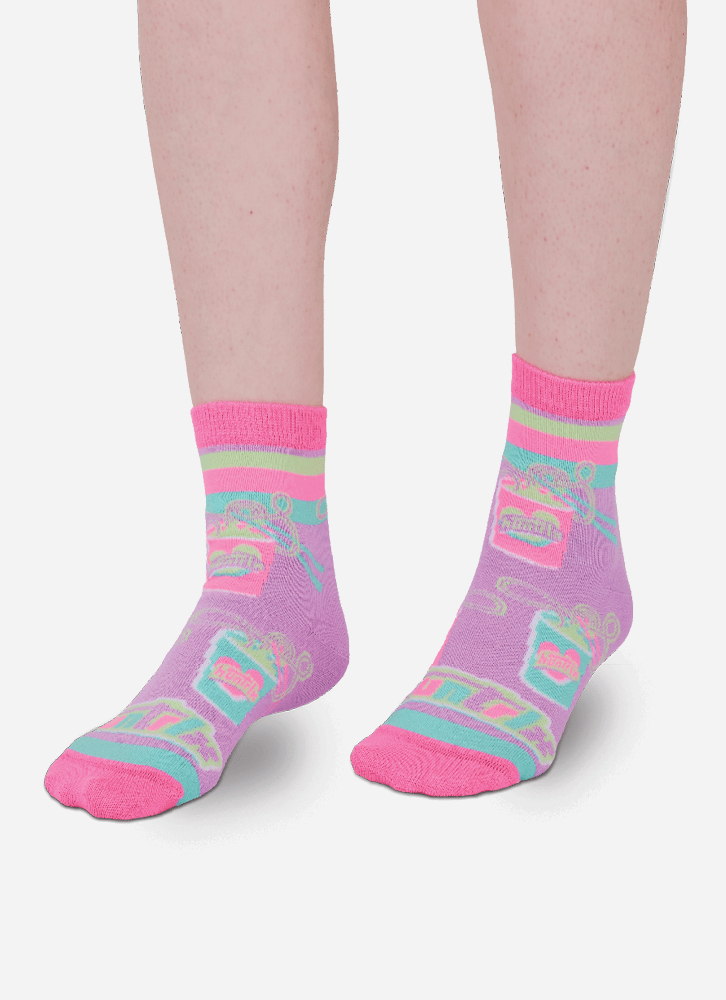 Meia soquete com desenho divertido do tema Guerreiras do Kpop. Possui cano de altura média. Produzida com algodão macio em sua maior parte, e poliamida no desenho. Indicação de uso: Ideal para usar com calçados fechados. Instruções de Lavagem: Lavagem a mão Não alvejar Instruções de Conservação: Não secar em tambor Não passar Não limpar a seco (MAIS INFORMAÇÕES, VIDE NA ETIQUETA) Instruções de Garantia: Deverá ser encaminhado dentro na embalagem original, sem indicações de uso ACOMPANHADO DE NOTA FISCAL E com todos os itens constante na solicitação da compra.