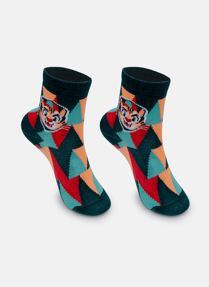 Meia soquete com desenho divertido de tigre. Possui cano de altura média. Produzida com algodão macio em sua maior parte, e poliamida no desenho. Indicação de uso: Ideal para usar com calçados fechados. Instruções de Lavagem: Lavagem a mão Não alvejar Instruções de Conservação: Não secar em tambor Não passar Não limpar a seco (MAIS INFORMAÇÕES, VIDE NA ETIQUETA) Instruções de Garantia: Deverá ser encaminhado dentro na embalagem original, sem indicações de uso ACOMPANHADO DE NOTA FISCAL E com todos os itens constante na solicitação da compra.