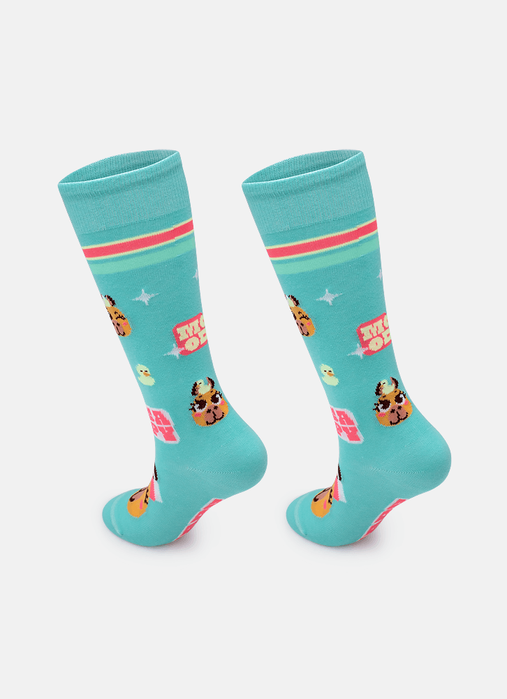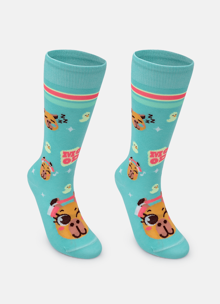 Meia 3/4 com desenho do tema de capivara, possui cano longo abaixo do joelho. É produzida com algodão macio em sua maior parte e poliamida nos desenhos Indicação de uso: Ideal para usar com calçados fechados. Instruções de Lavagem: Lavagem a mão Não alvejar Instruções de Conservação: Não secar em tambor Não passar Não limpar a seco (MAIS INFORMAÇÕES, VIDE NA ETIQUETA) Instruções de Garantia: Deverá ser encaminhado dentro na embalagem original, sem indicações de uso ACOMPANHADO DE NOTA FISCAL E com todos os itens constante na solicitação da compra.