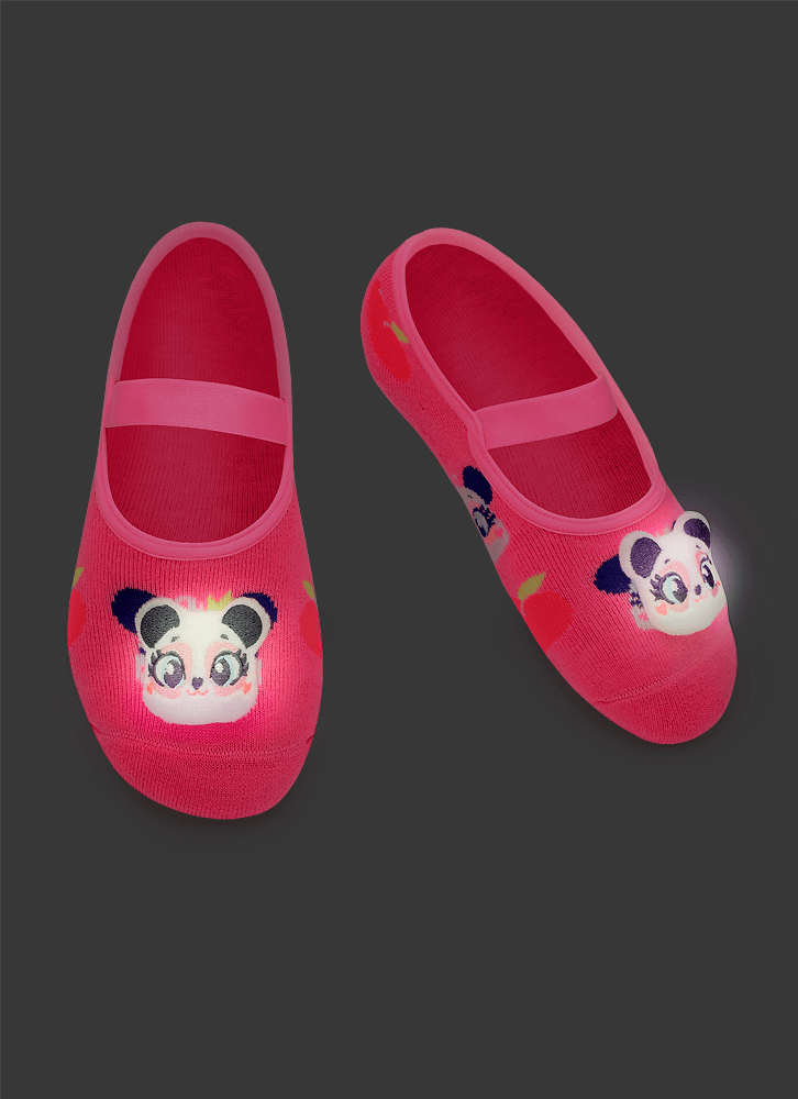 Meia Sapatilha Antiderrapante Menina Panda Romântico com LED