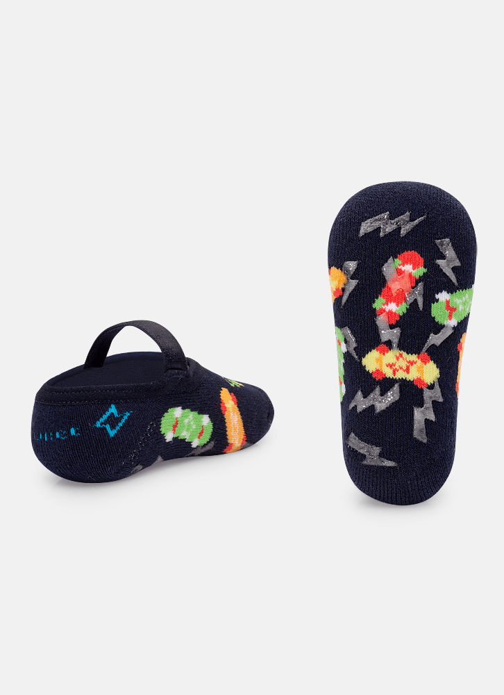 Meia Sapatilha Antiderrapante Bebê Menino Dinossauro Skate
