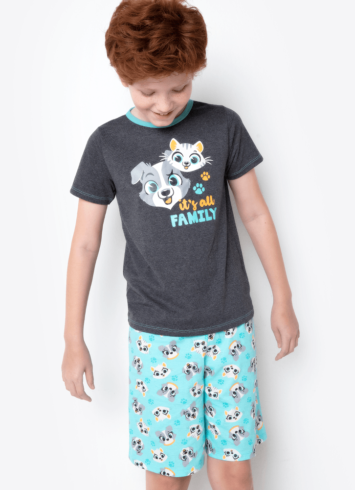 Pijama Manga Curta Menino Teen Família Pets