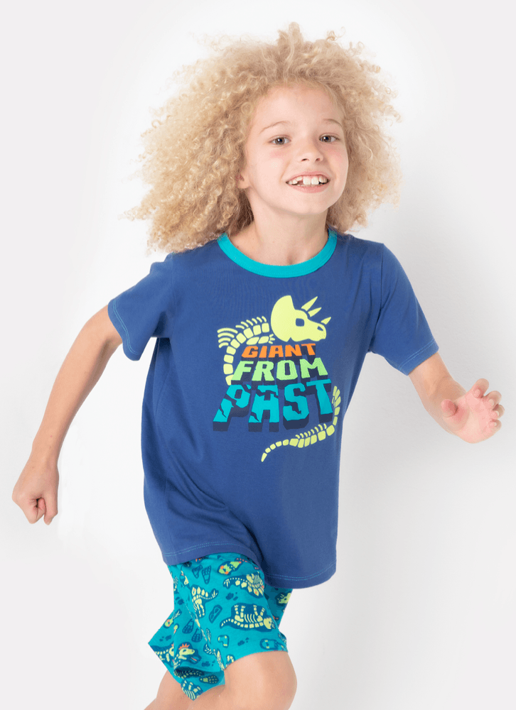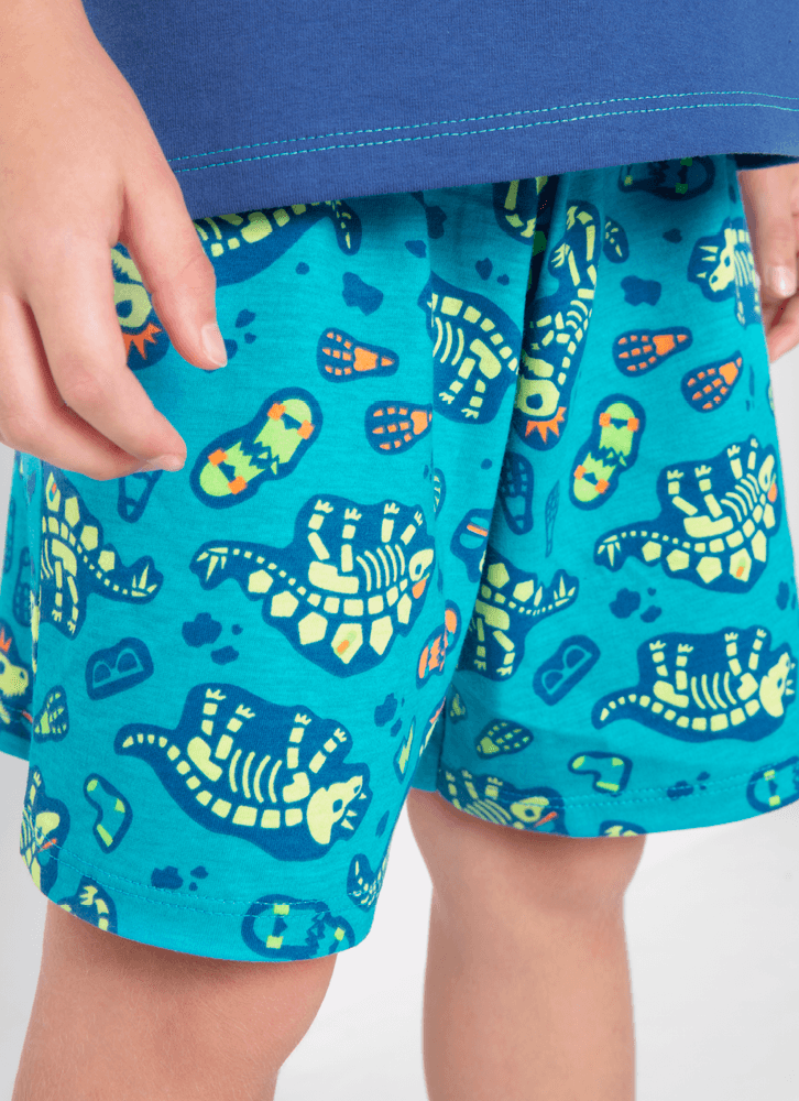 Pijama Manga Curta Menino Algodão Dinossauro Fósseis