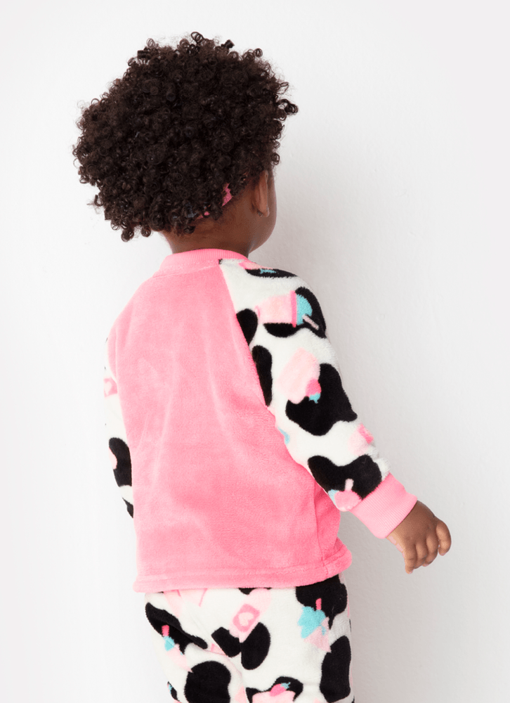 Pijama em coral fleece com estampa de vaquinha Puket <3 Possui toque macio devido a sua característica felpuda o que torna o pijama super quentinho e confortável. Ideal para aconchegar noites frias. Mangas longas com punhos em ribana; Gola redonda; Aplique 3D do rostinho do personagem Calça estampada com elástico macio na cintura; Calça modelagem reta com punhos em ribana; Lavagem e conservação: Lavagem à mão; não alvejar; não secar em tambor; não passar; não limpar a seco (para mais informações, consulte a etiqueta fixada ao produto). Garantia: Deverá ser encaminhado dentro da embalagem original; sem indicações de uso; acompanhado de nota fiscal e com todos os Itens constante na solicitação da compra.