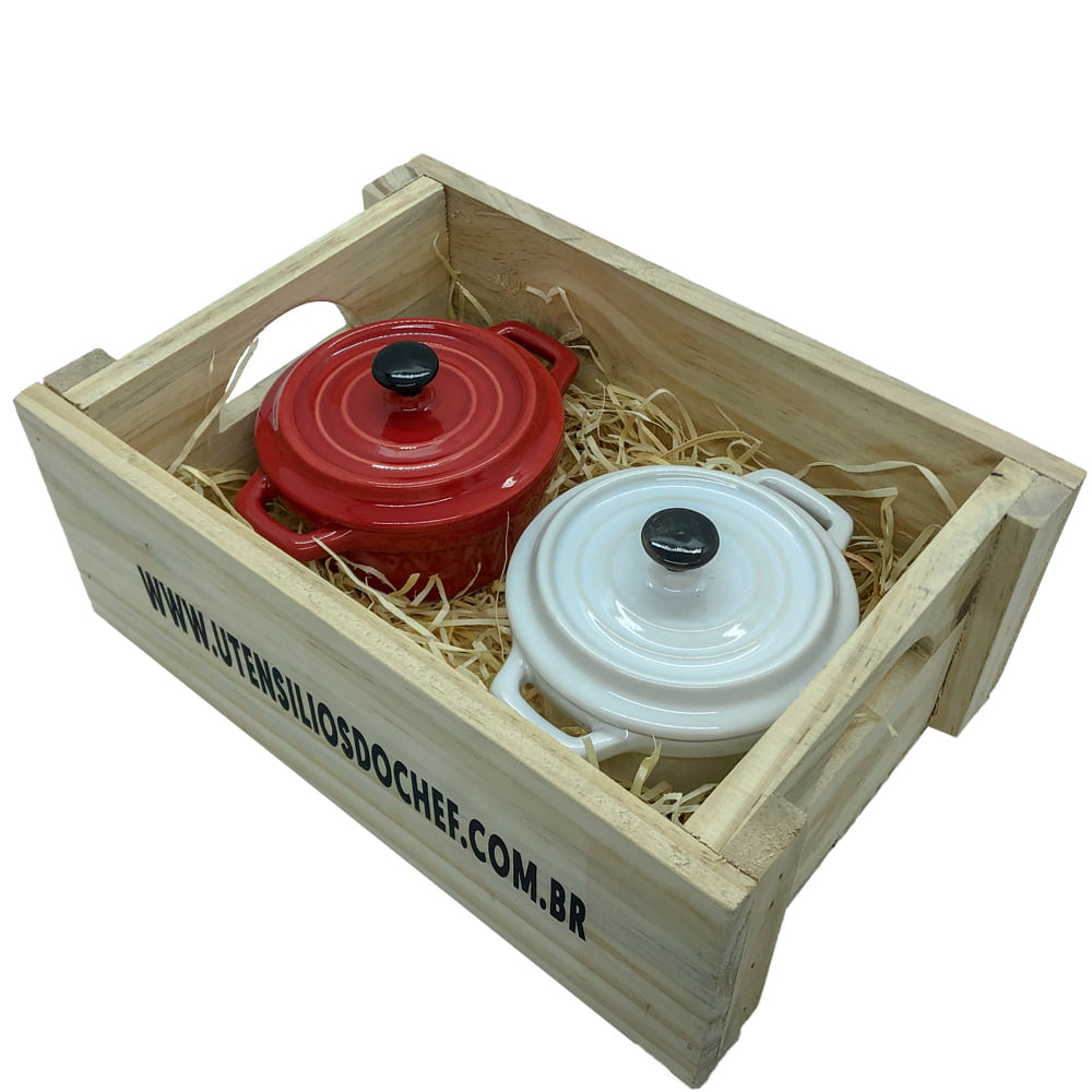 Panelinhas Vermelha, Branco de Porcelana com engradado para presente